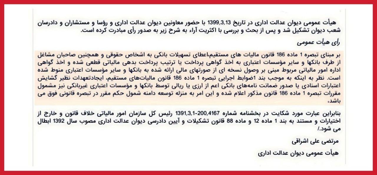 اعطای هرگونه تسهیلات ارزی یا ریالی توسط بانکها و مؤسسات اعتباری غیر بانکی به کلیه اشخاص حقوقی و حقیقی (صاحبان مشاغل) برای اشخاص حقوقی از مبلغ ۵ میلیارد ریال و بالاتر و برای اشخاص حقیقی از مبلغ ۲ میلیارد ریال و بالاتر ظرف مدت یک سال شمسی، مشمول مقررات تبصره یک ماده ۱۸۶ قانون مالیاتهای مستقیم است.