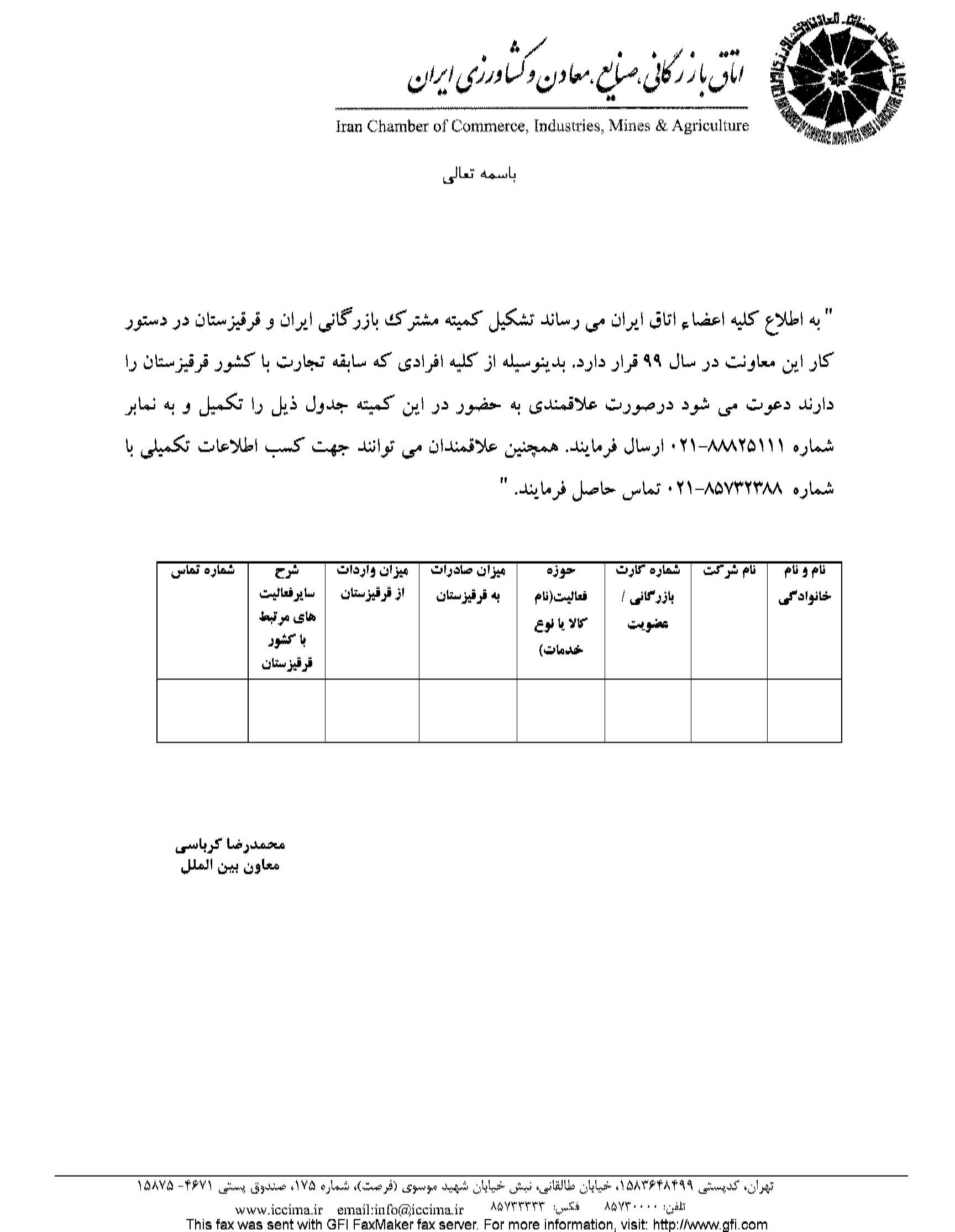 قابل توجه علاقمندان به حضور در کمیته مشترک بازرگانی ایران و قرقیزستان