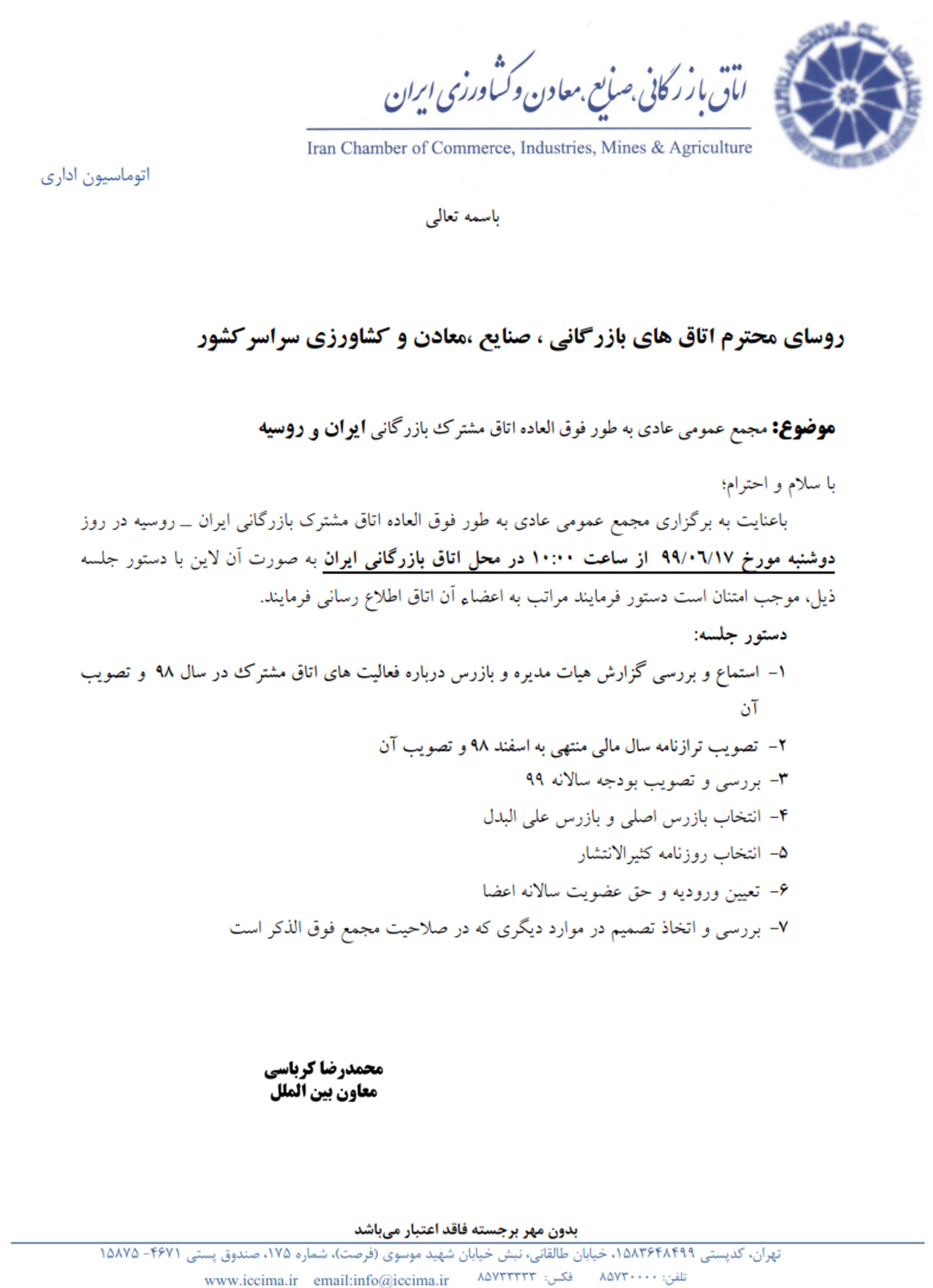 مجمع عمومی عادی به طور فوق العاده اتاق مشترک بازرگانی ایران و روسیه