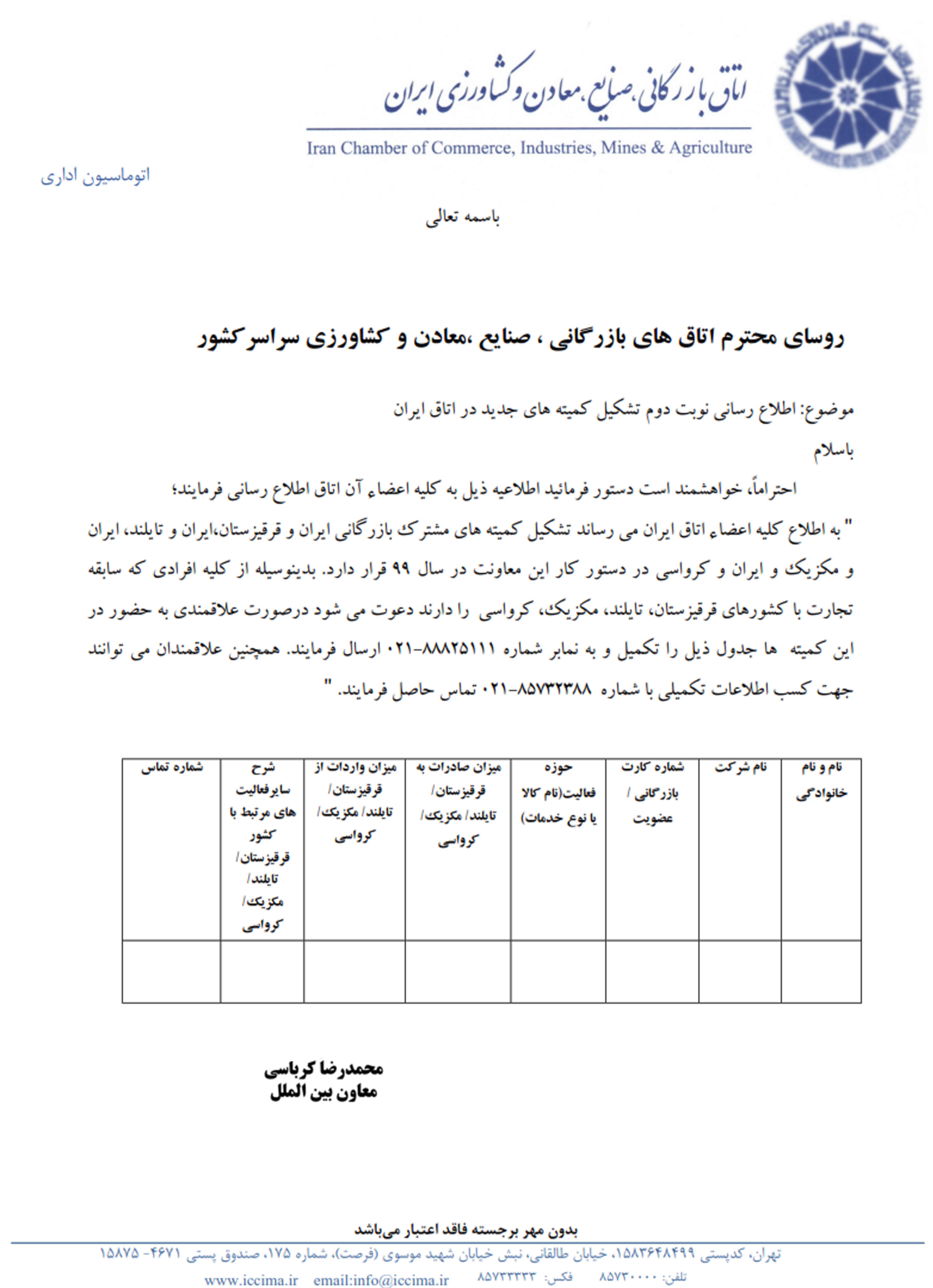 اطلاع رسانی نوبت دوم تشکیل کمیته های جدید در اتاق ایران