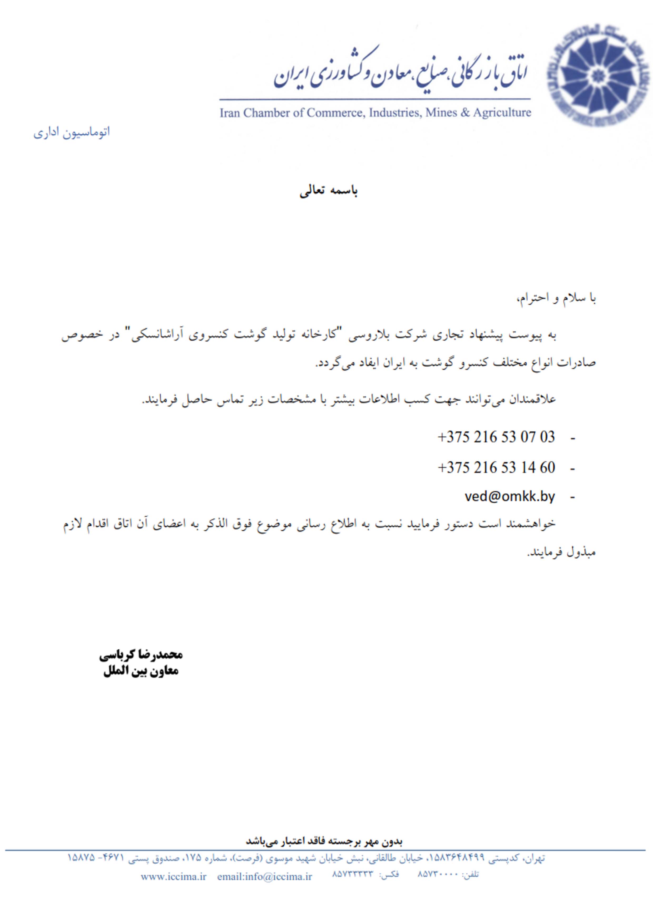 شرکت بلاروسی تولید گوشت کنسروی علاقهمند به همکاری با ایران