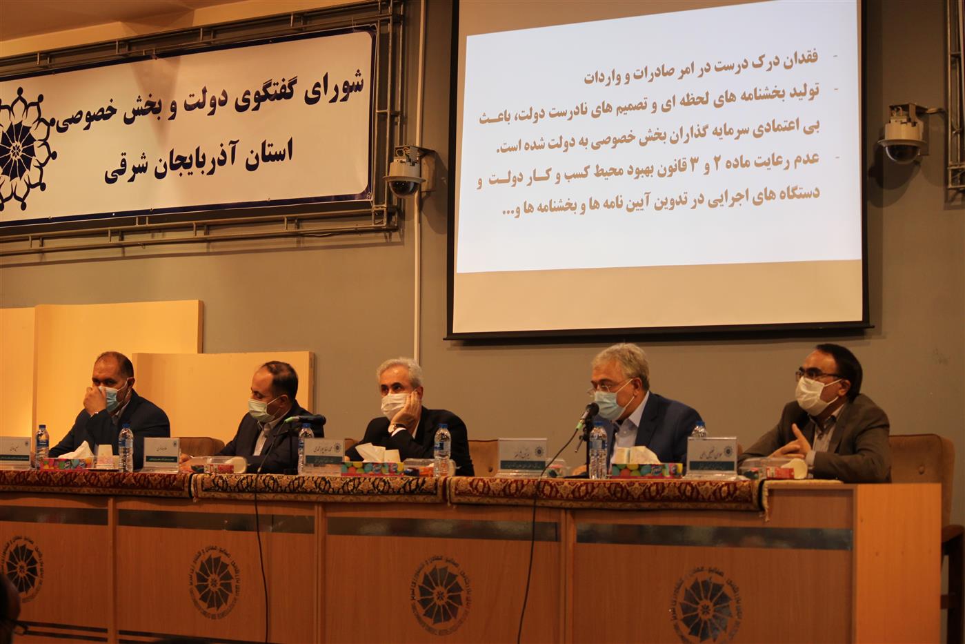 استاندار آذربایجان شرقی نیز در ابتدای این نشست با اشاره به وجود ادبیات تفاهم و همدلی میان مسئولان بخش های مختلف استان گفت: بخش خصوصی و مسئولان دولتی دست در دست هم به فکر توسعه استان هستند.