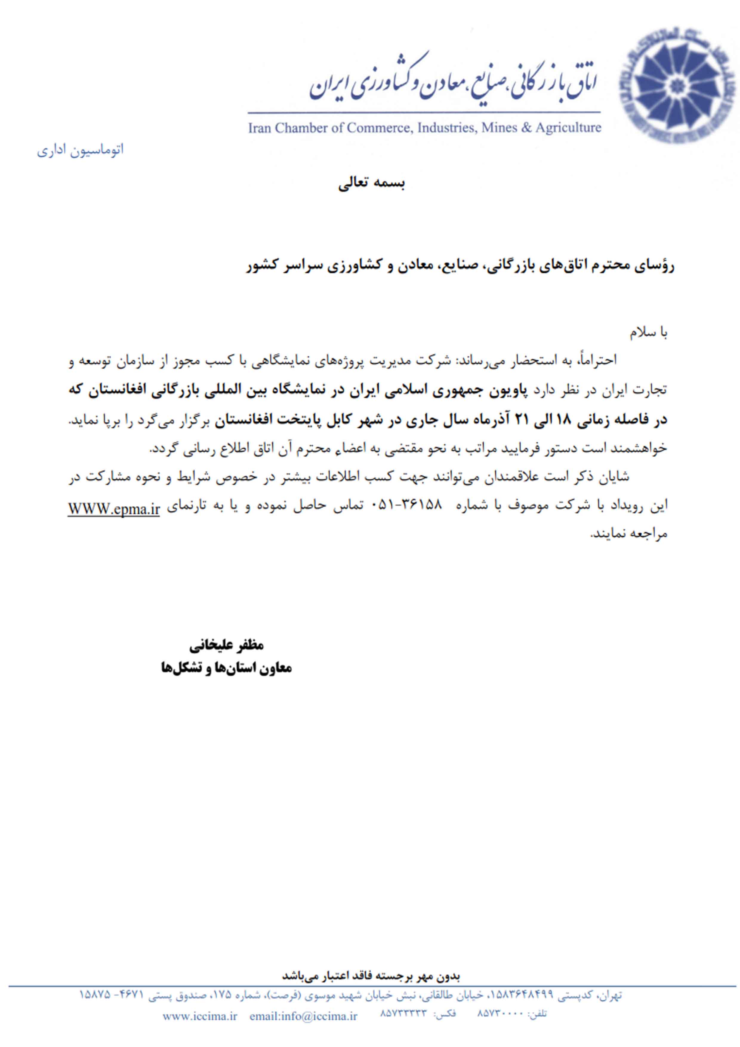 پاویون جمهوری اسلامی ایران در نمایشگاه بین‌المللی بازرگانی افغانستان