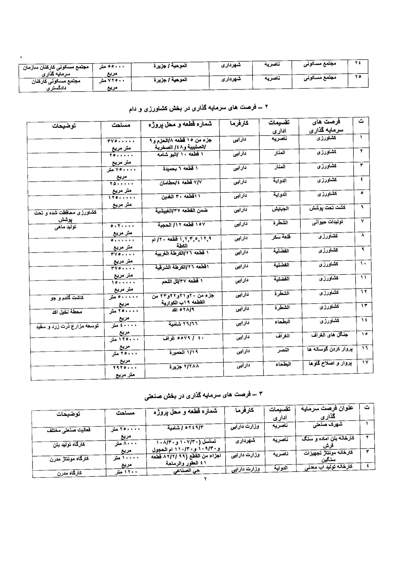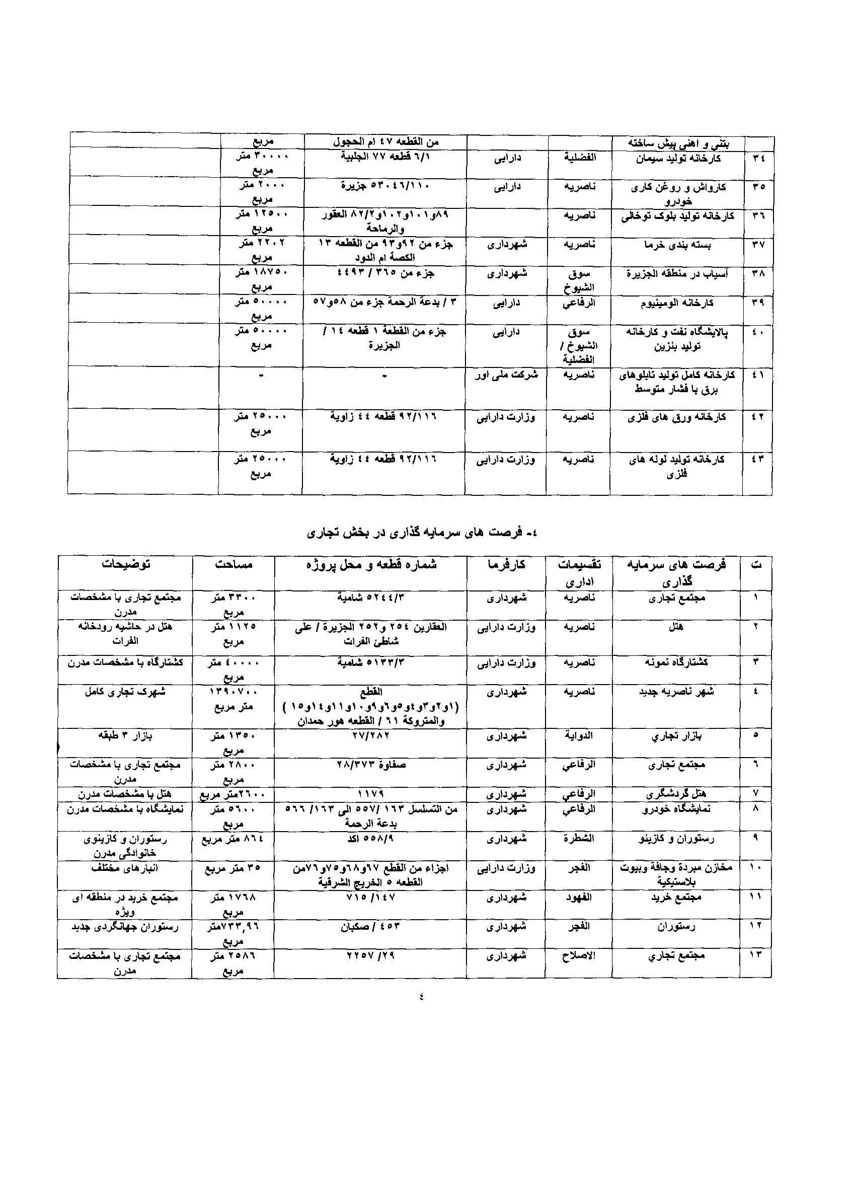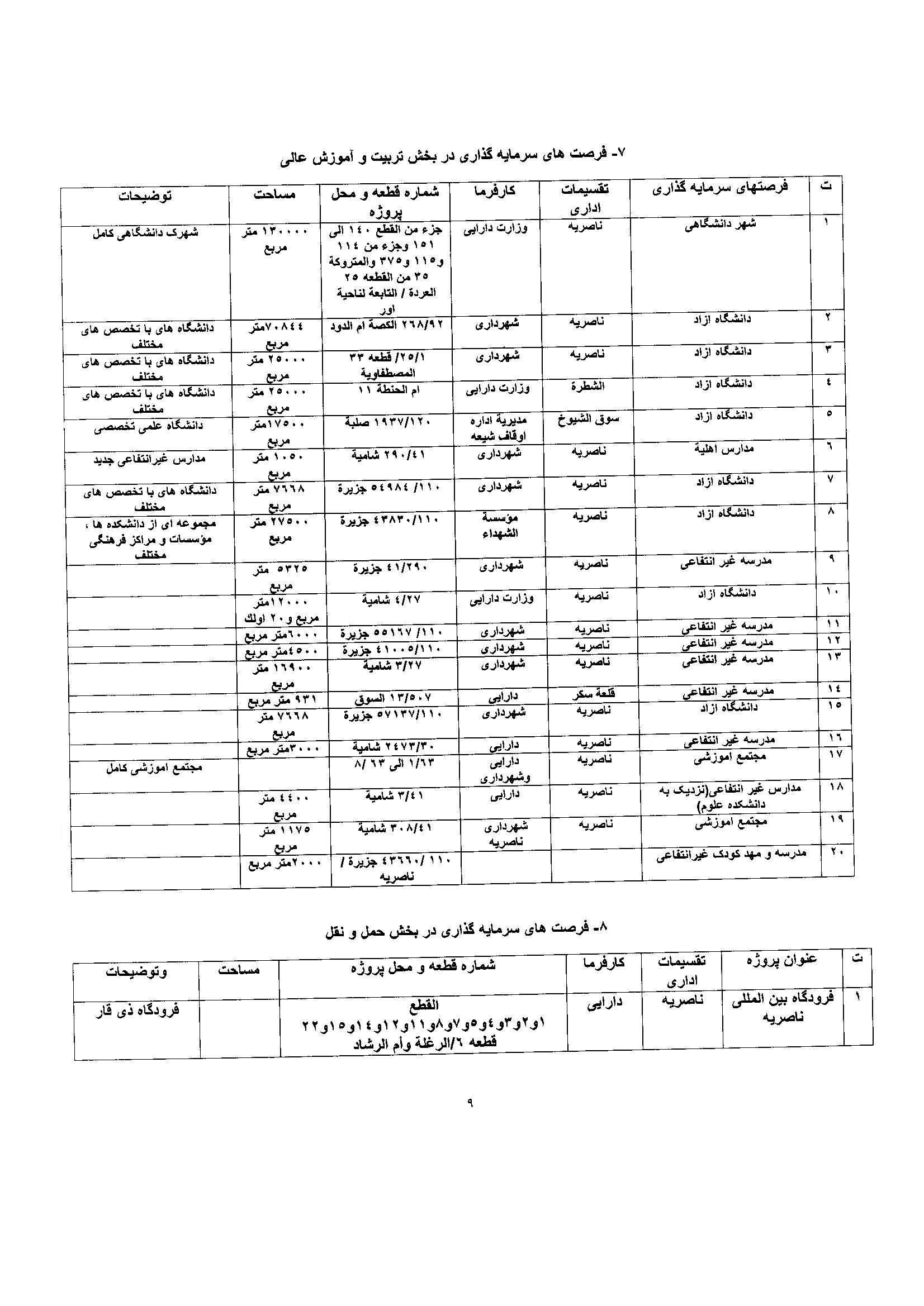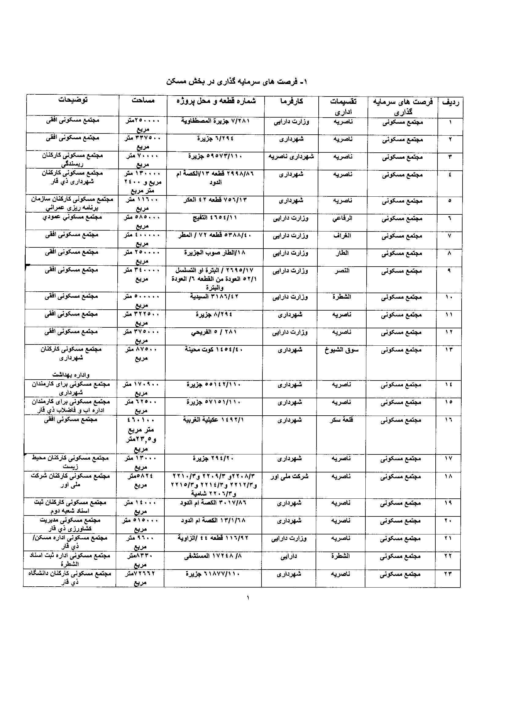 فهرست پروژه های سرمایه گذاری استان ذیقار عراق