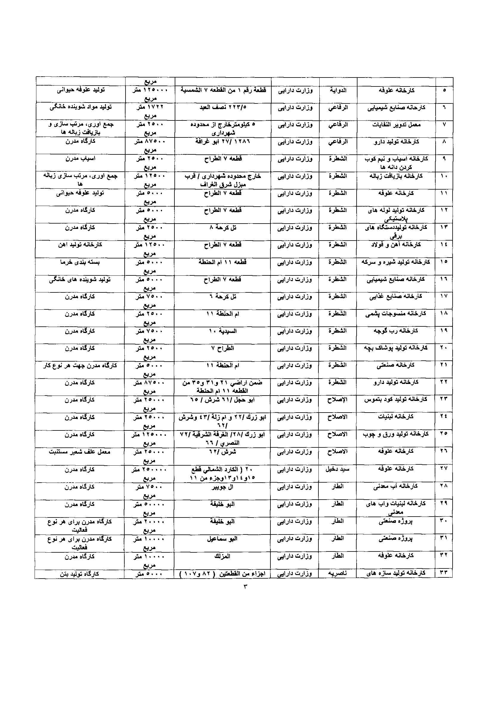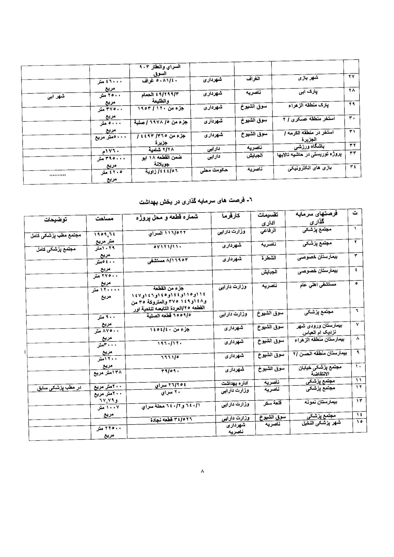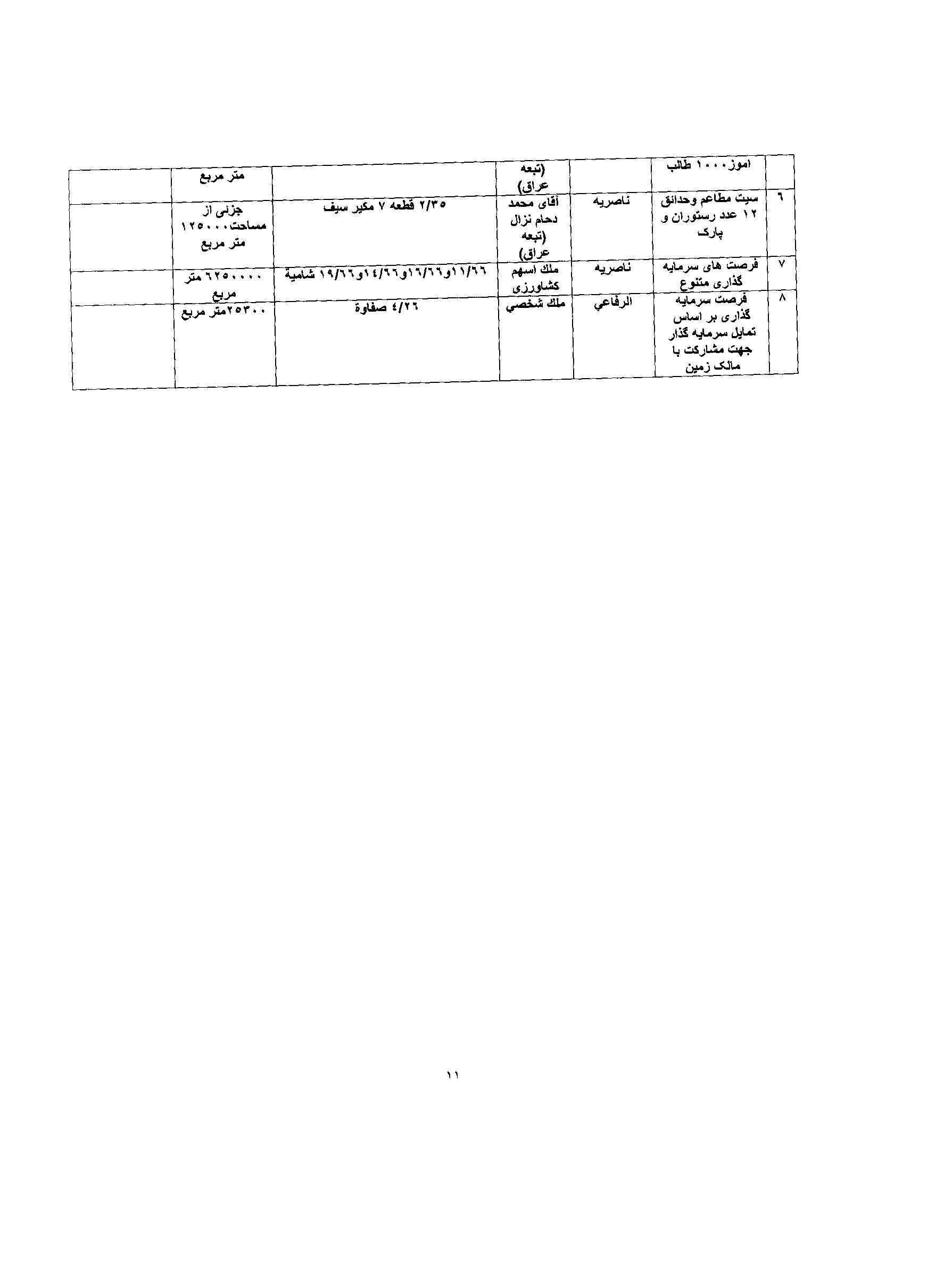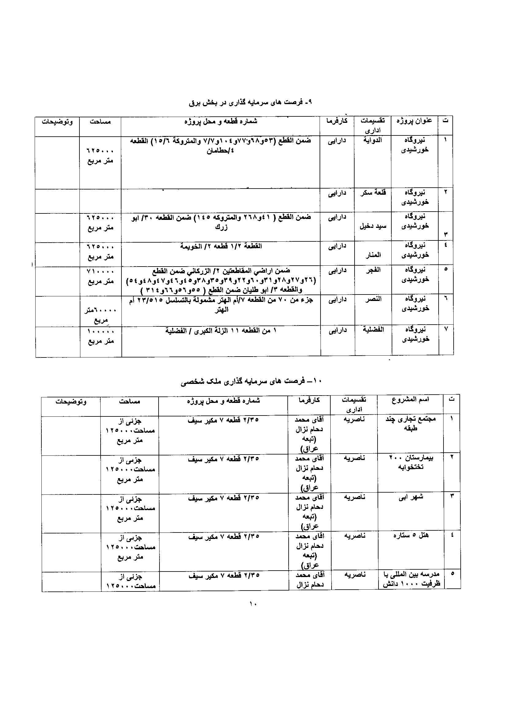 فهرست پروژه های سرمایه گذاری استان ذیقار عراق