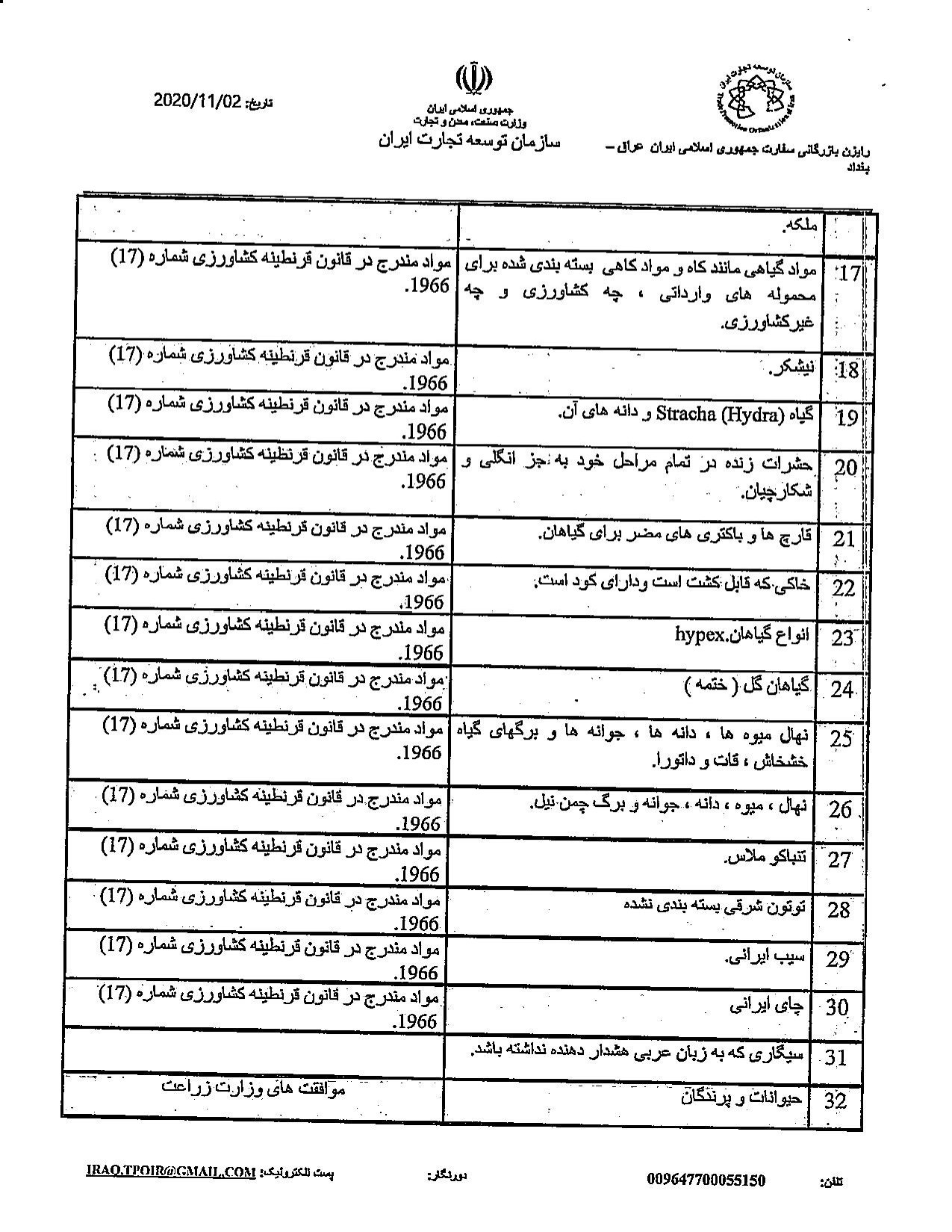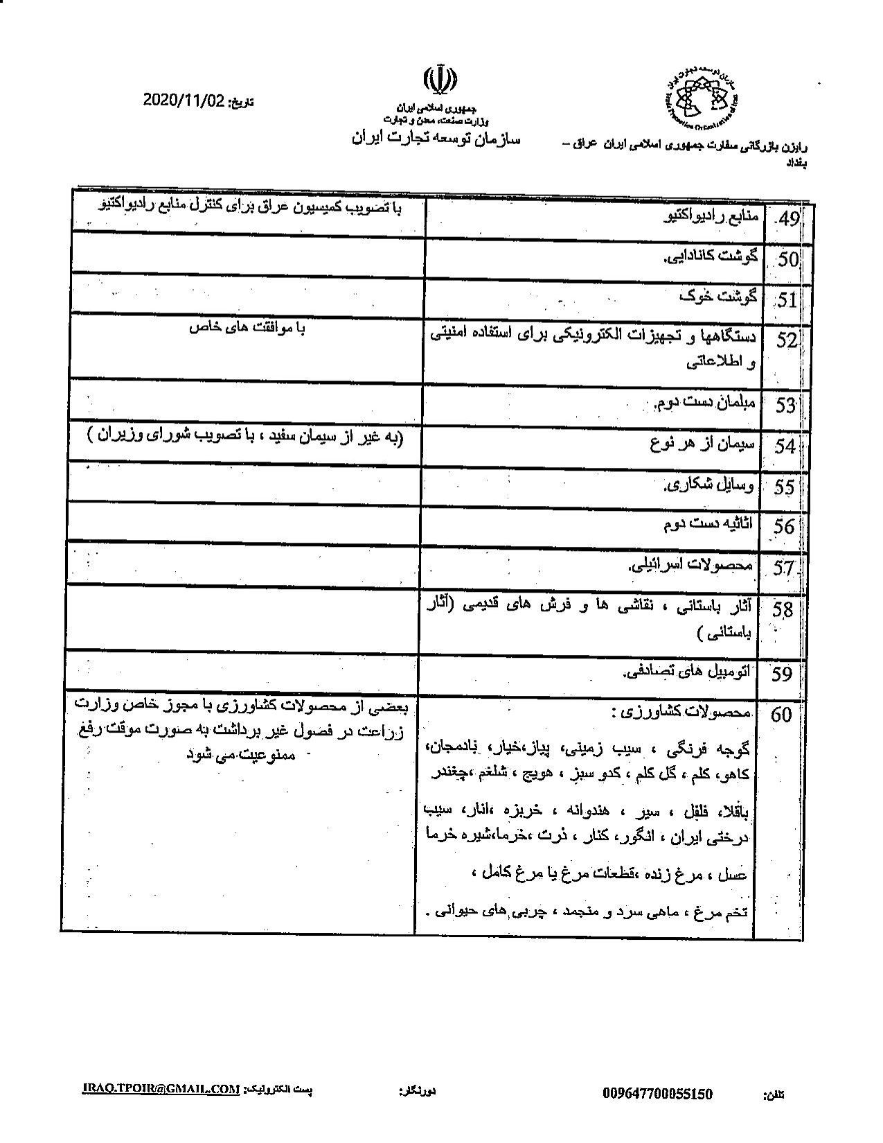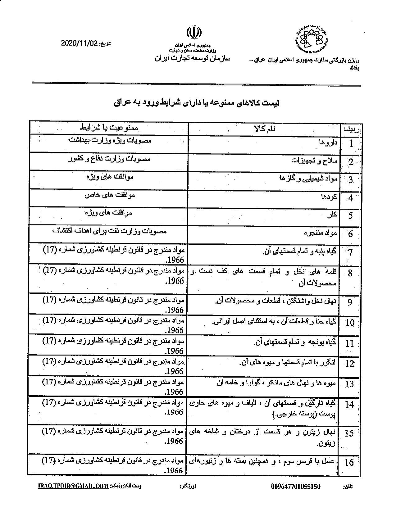 لیست کالاهای ممنوعه یا دارای شرایط ورود به عراق
