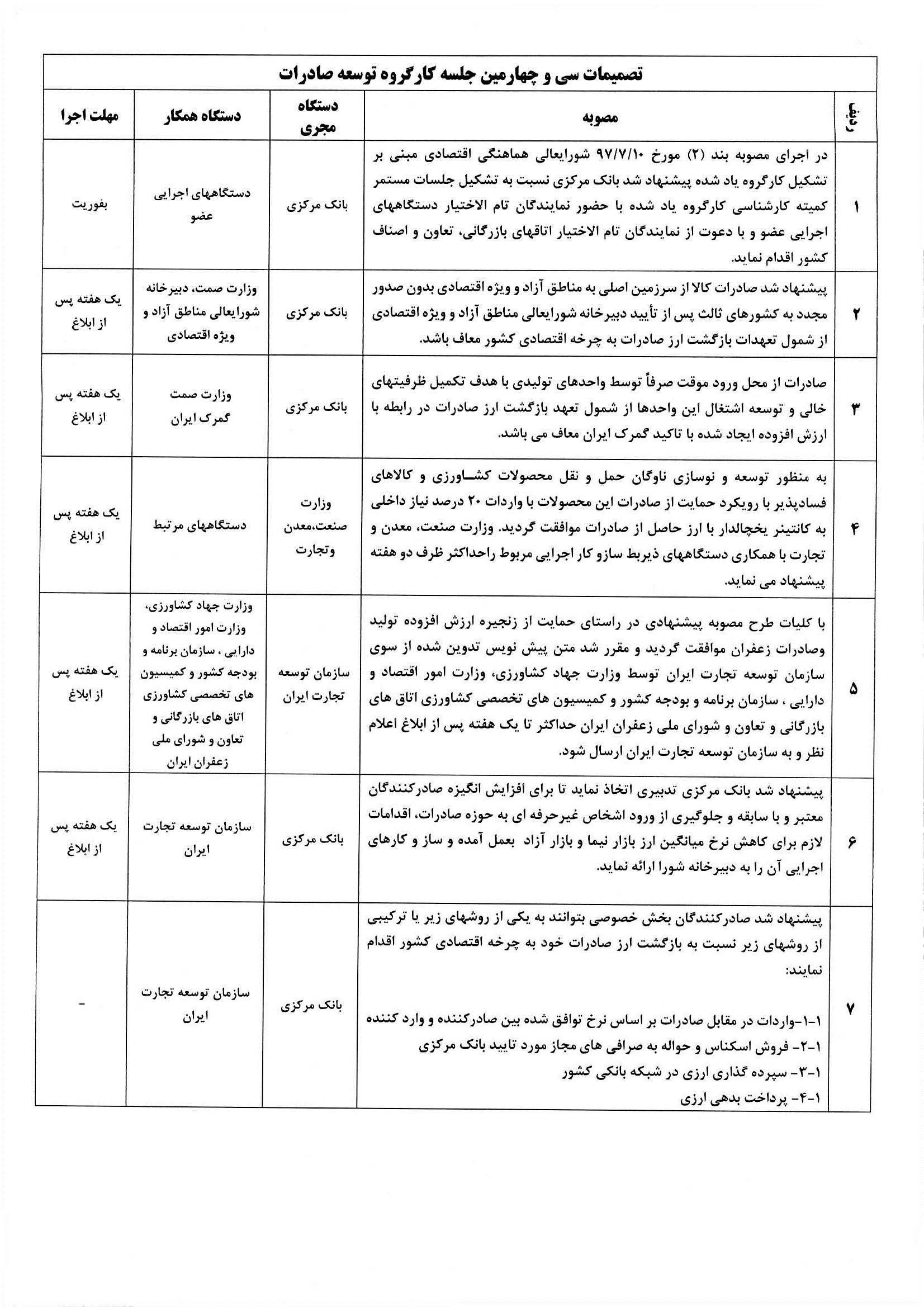 تصمیمات سی و چهارمین جلسه کارگروه توسعه صادرات کشور