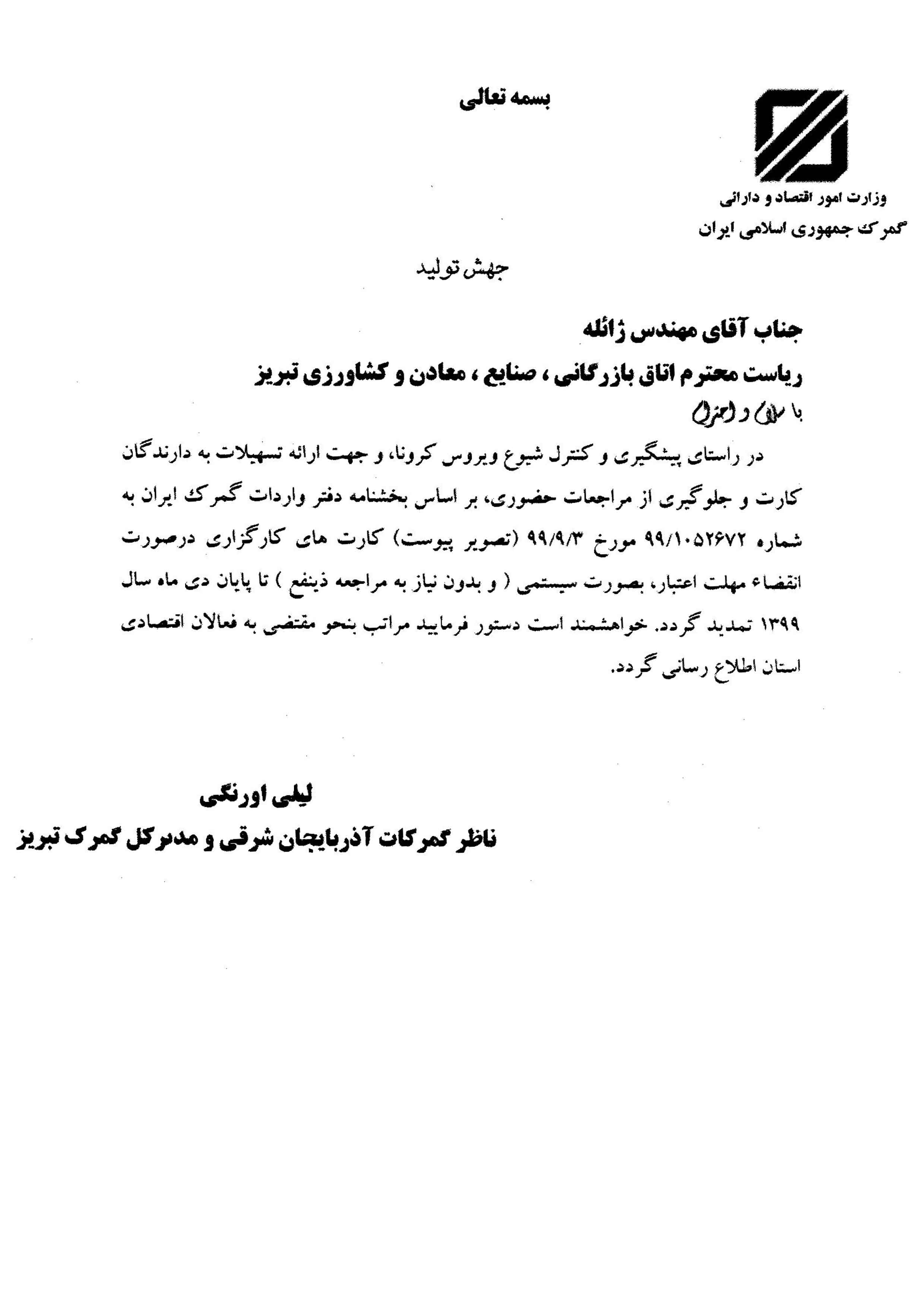 تمدید کارتهای کارگزاری در صورت انقضاء مهلت اعتبار به صورت سیستمی تا پایان دیماه 99