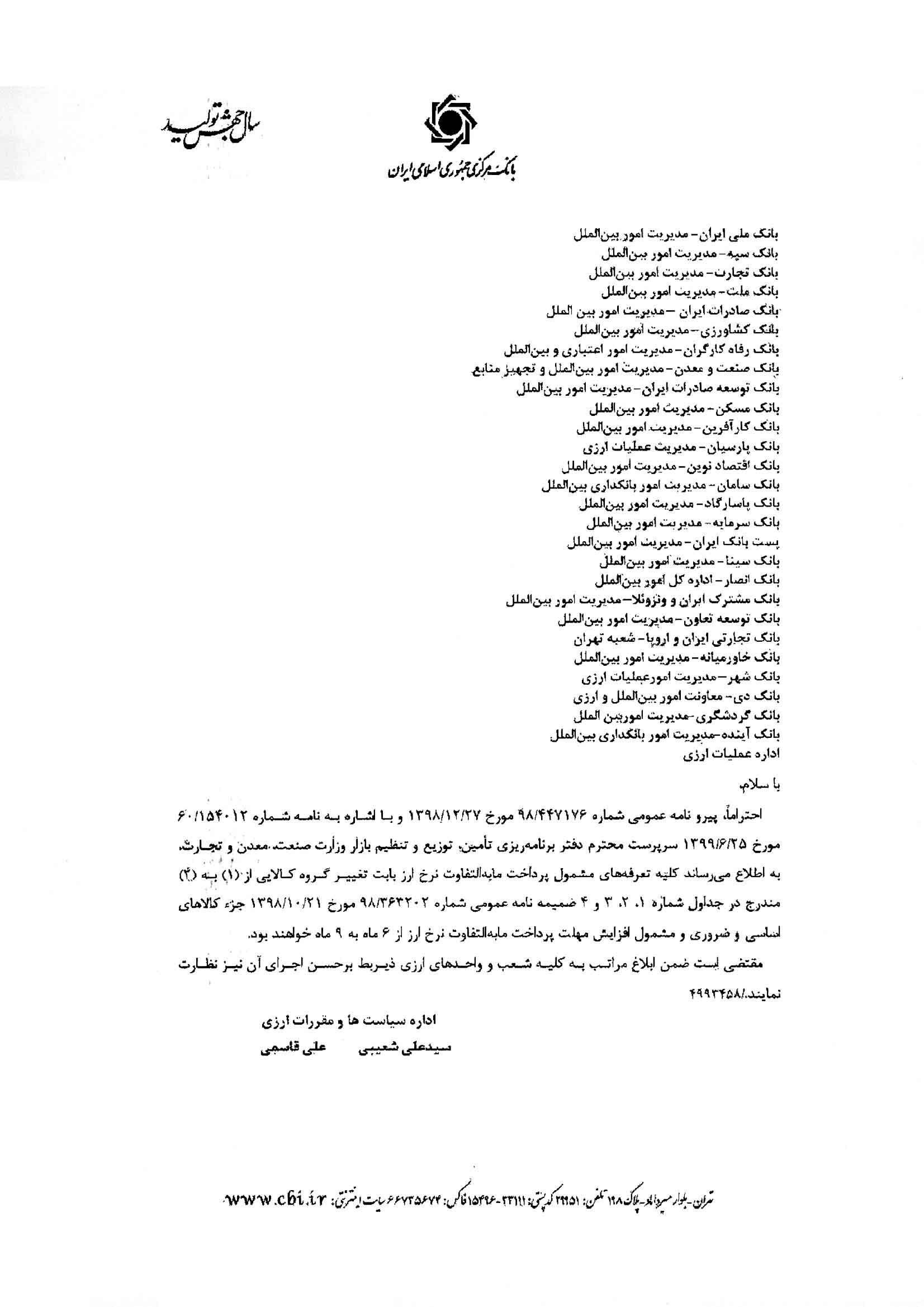 مهلت پرداخت مابه التفاوت نرخ ارز بابت تغییر گروه کالایی از (1) به (2)