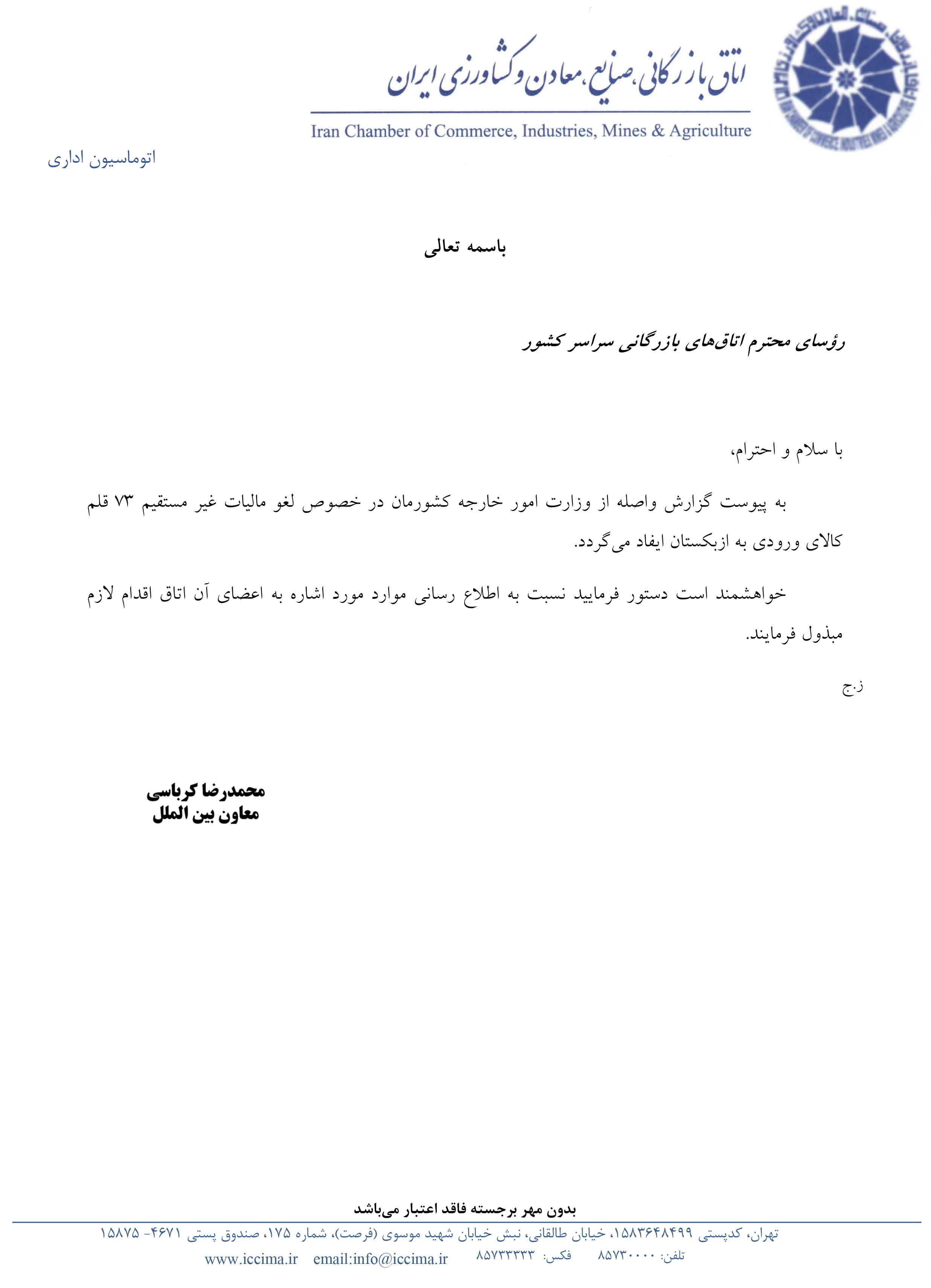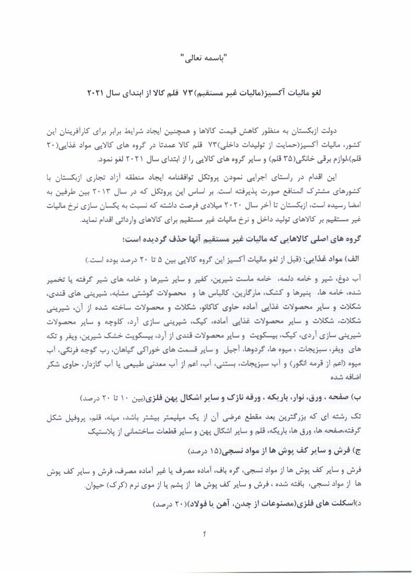 لغو مالیات غیرمستقیم 73 قلم کالای ورودی به ازبکستان