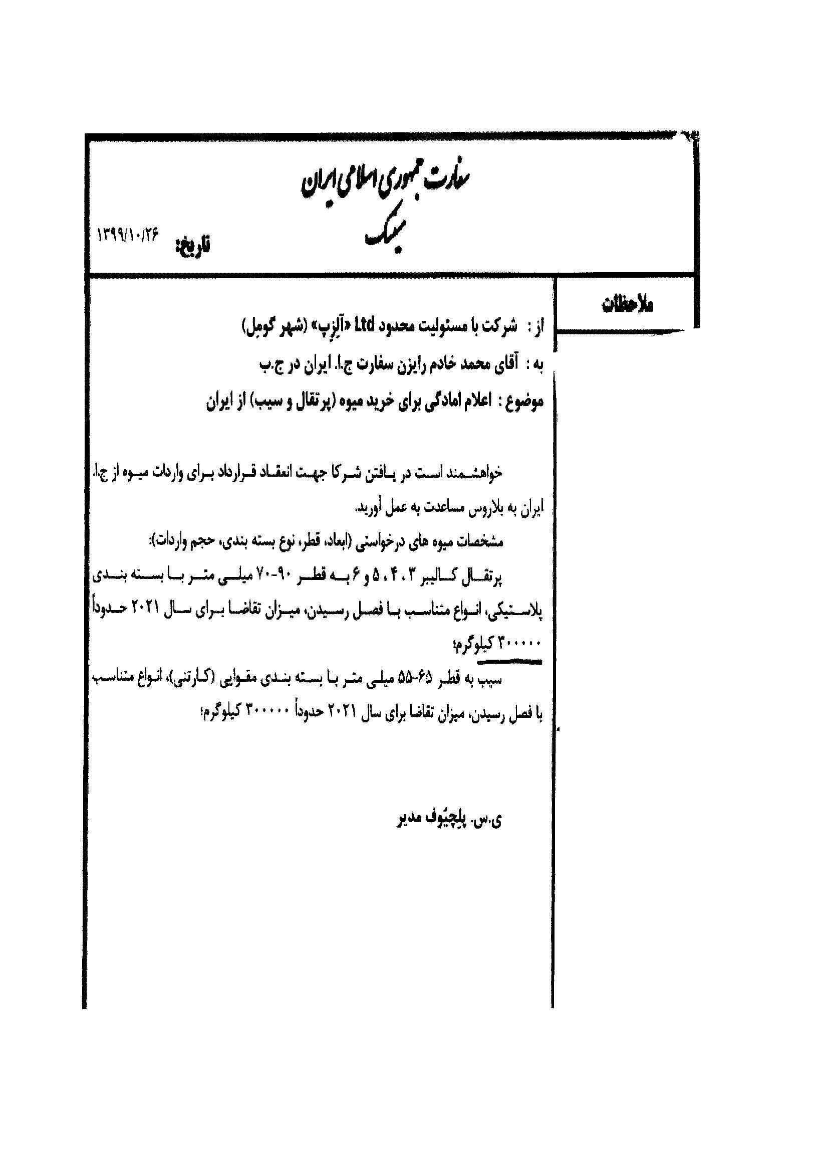 معرفی خریدار خارجی محصولات سیب و پرتقال
