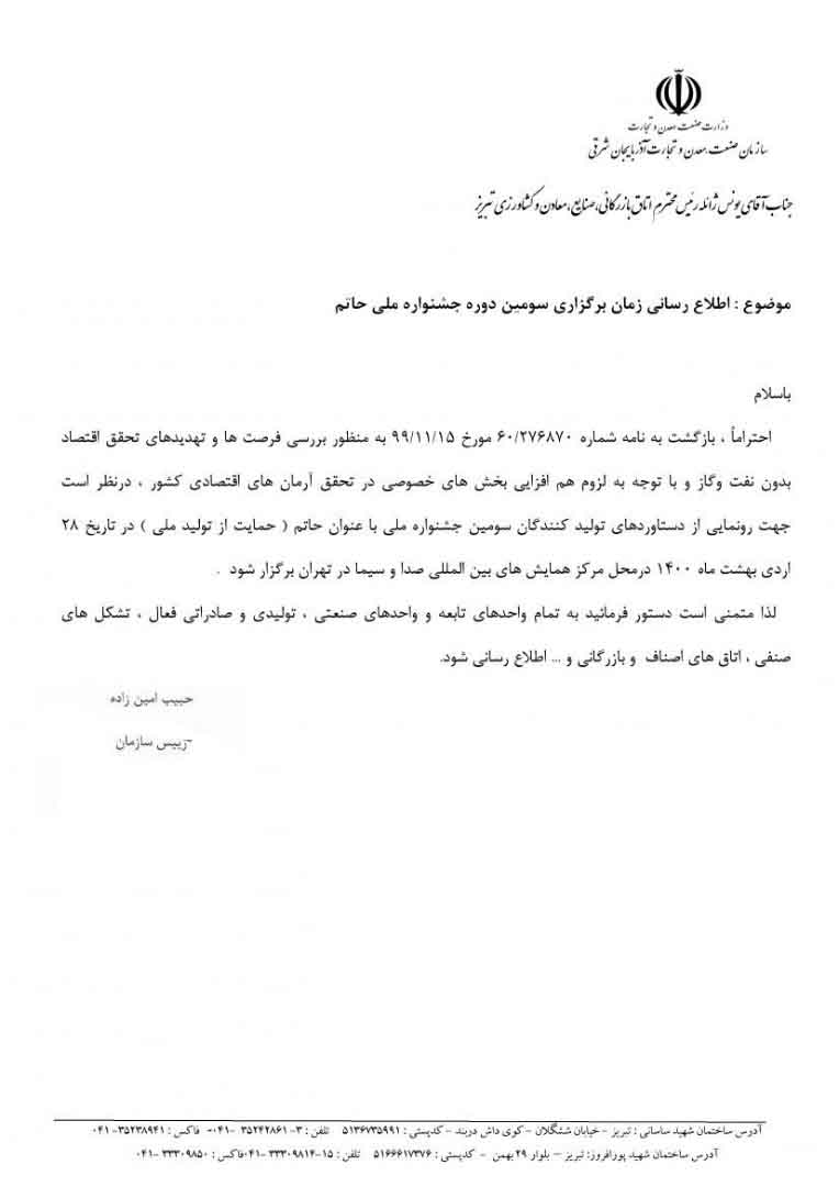 اطلاع رسانی زمان برگزاری سومین دوره جشنواره ملی حاتم