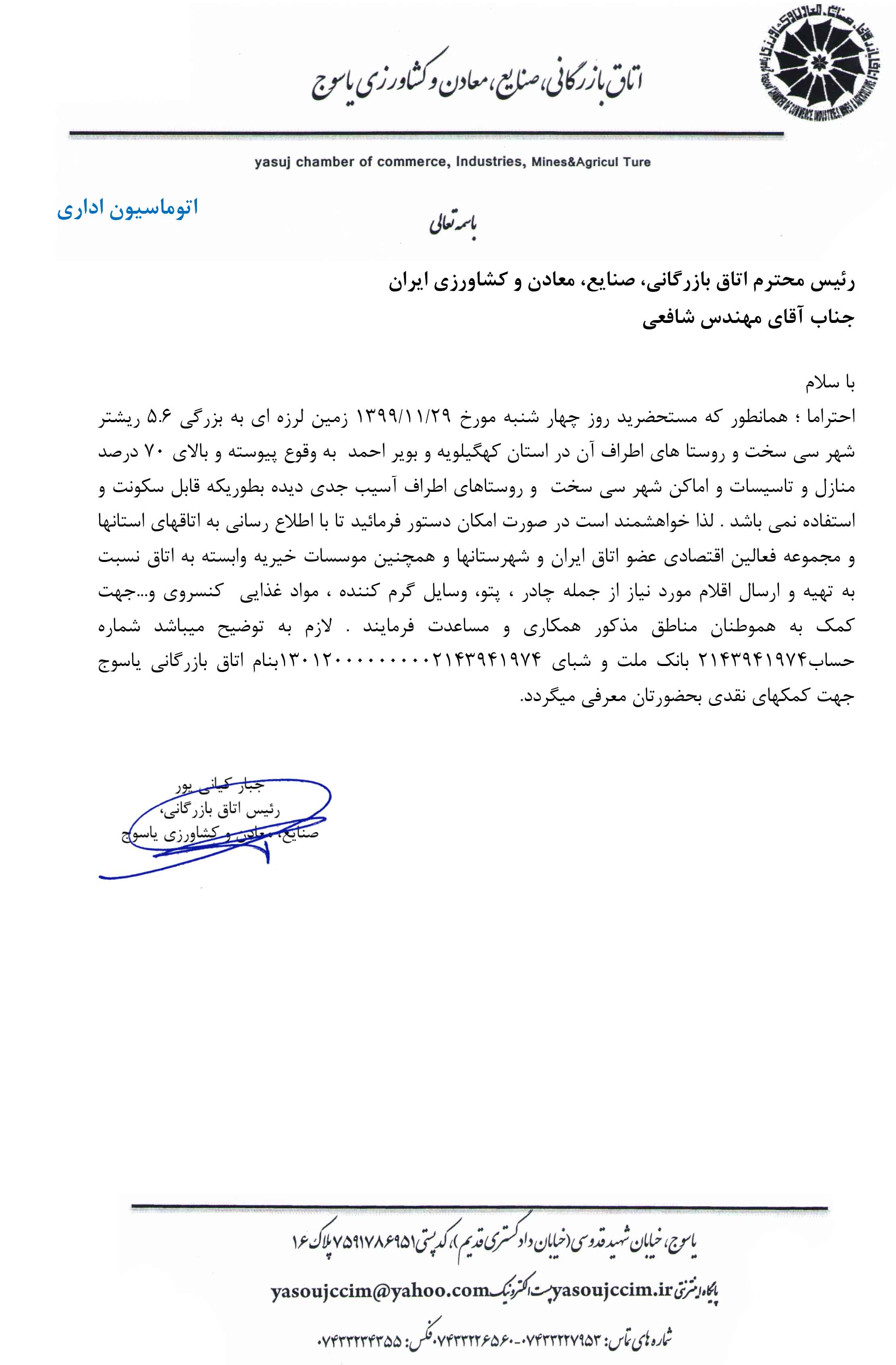 اطلاع رسانی برای کمک به مناطق زلزله زده سی سخت کهگیلویه و بویراحمد