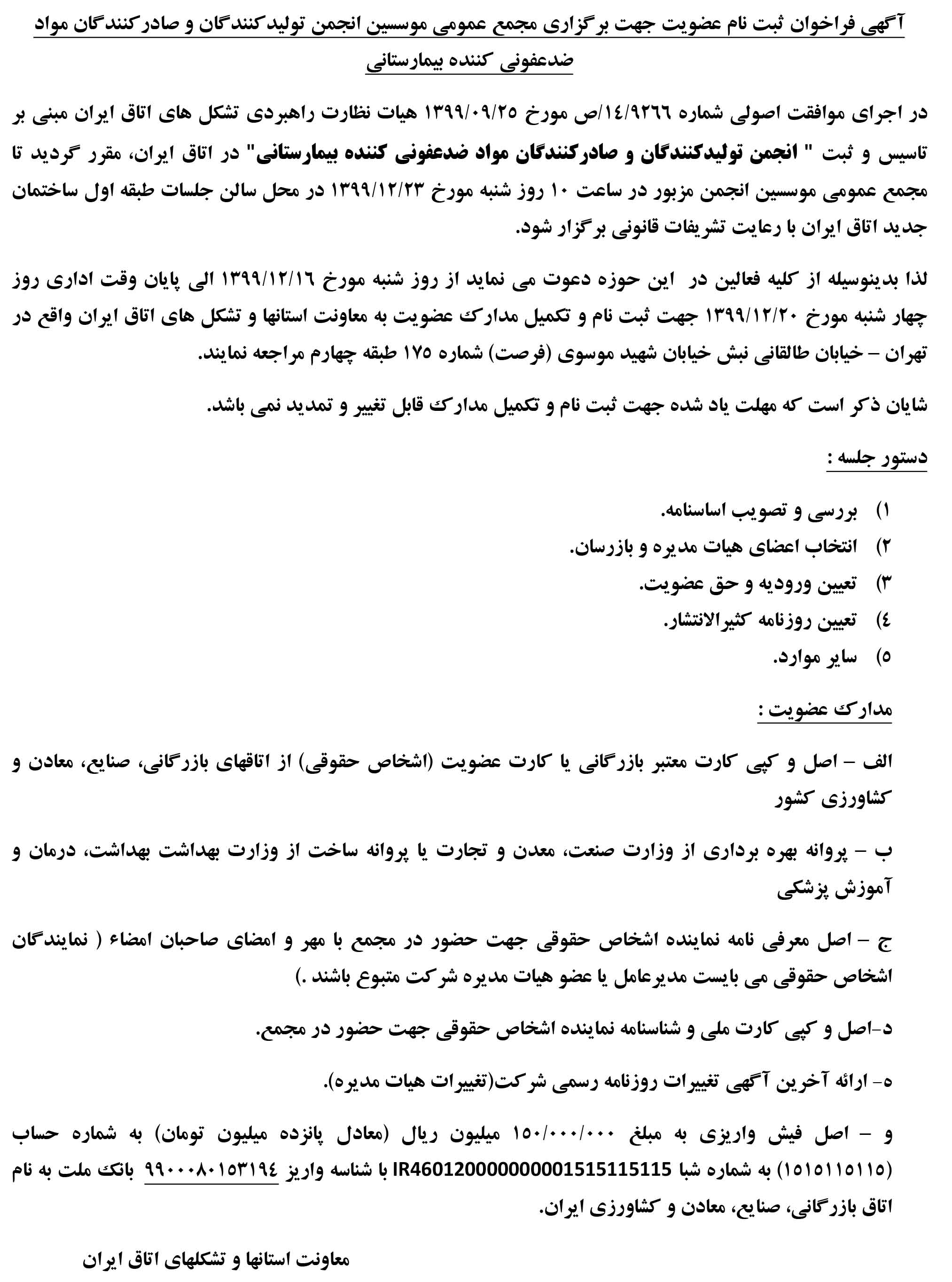 آگهی فراخوان ثبت نام عضویت جهت برگزاری مجمع عمومی