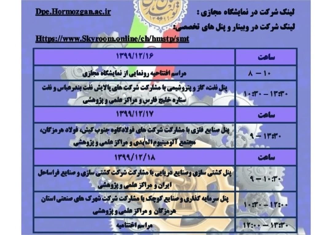 برنامه های دومین نمایشگاه مجازی فرصت های ساخت داخل و جهش تولید استان هرمزگان