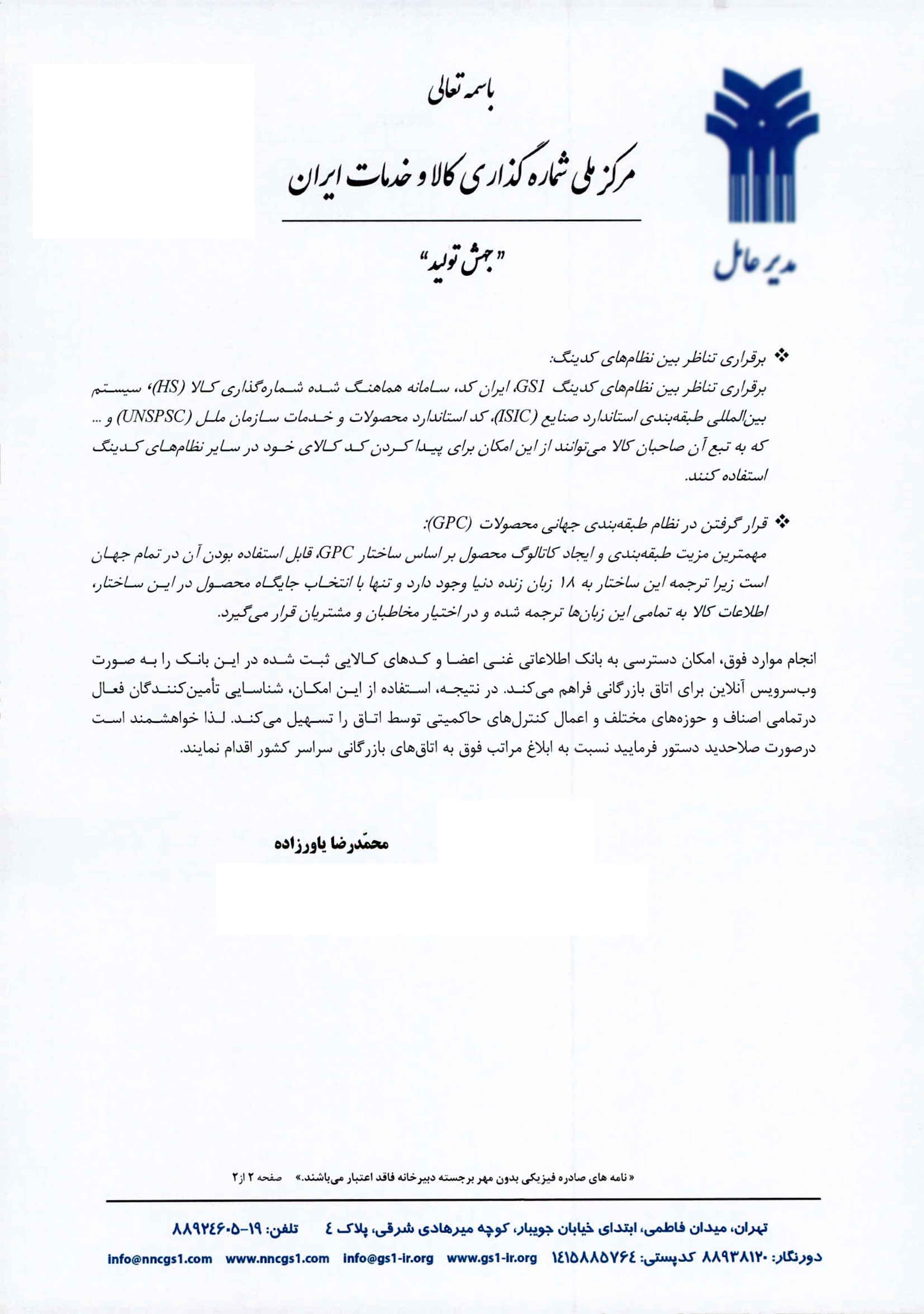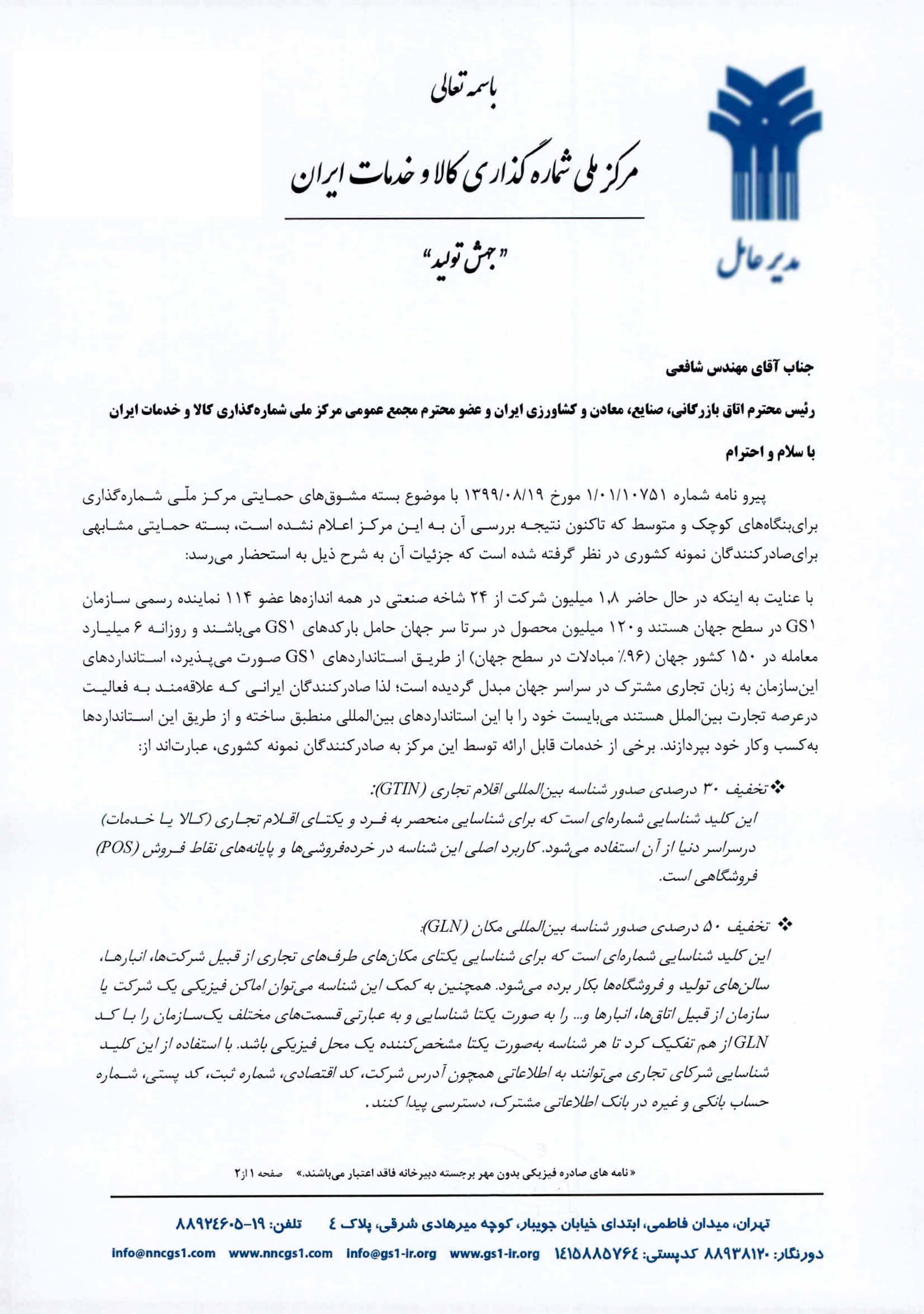 بسته مشوق های حمایتی مرکز ملی شماره گذاری کالا و خدمات ایران