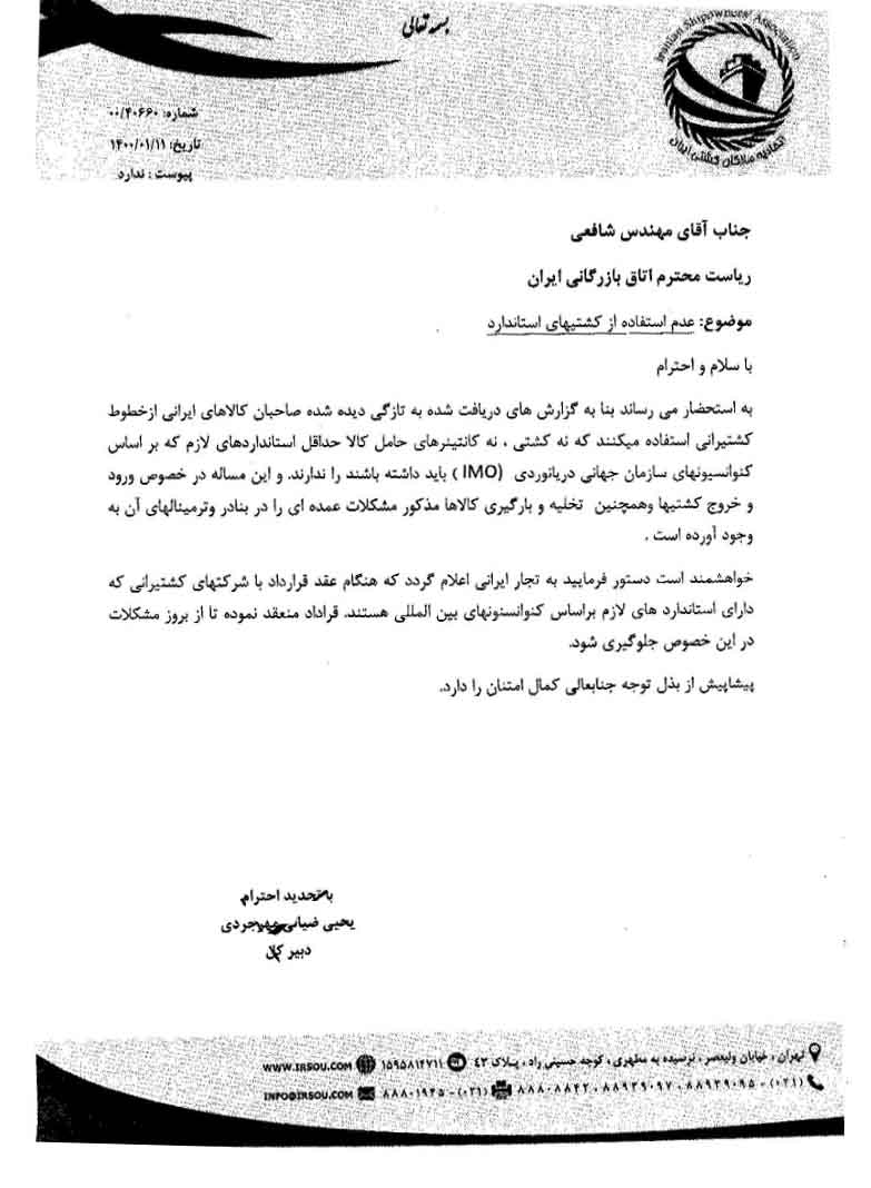 عدم استفاده صاحبان کالای ایرانی از کشتی های استاندارد و تبعات ناشی از آن