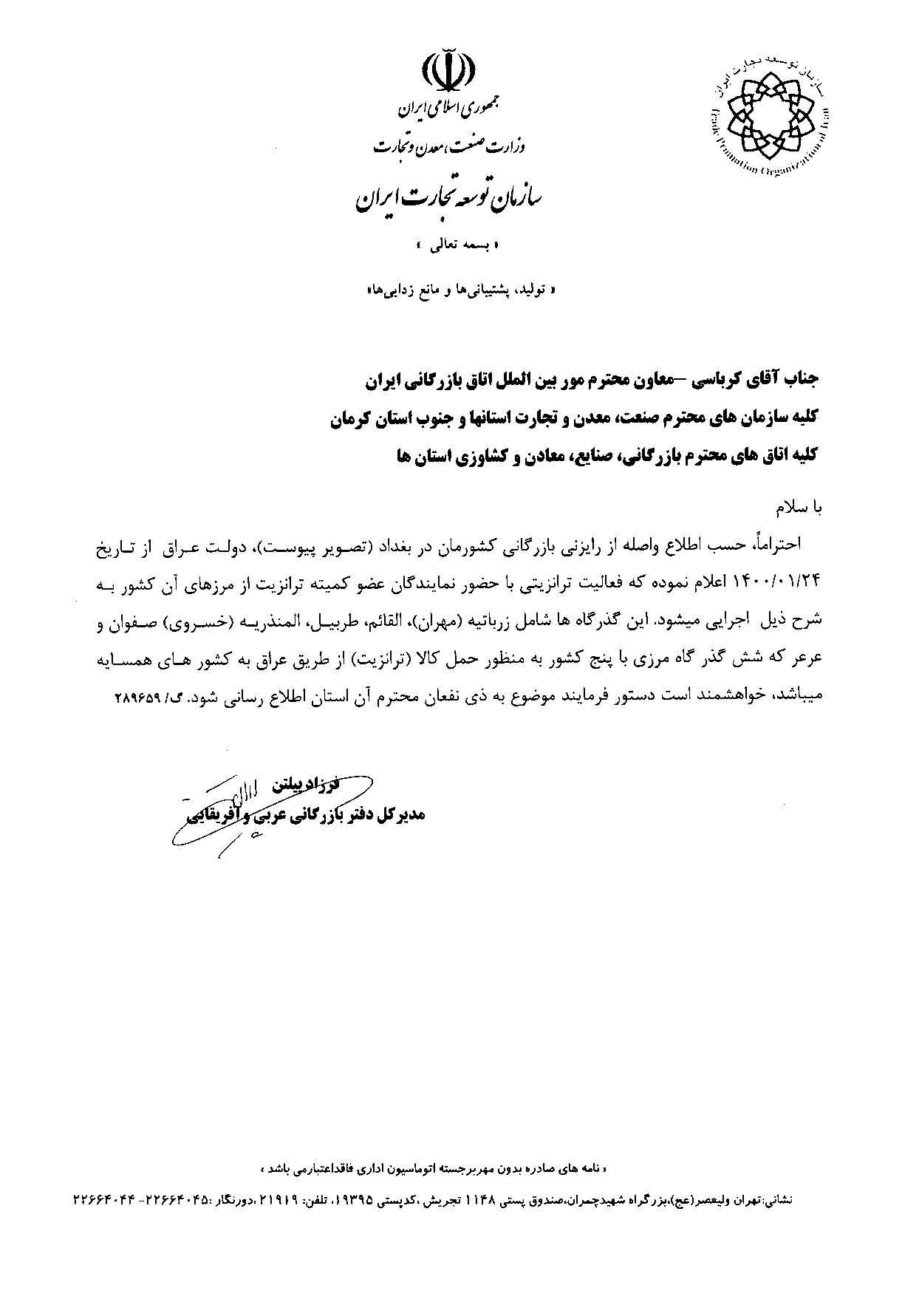 فعالیت ترانزیتی از مرزهای کشور عراق
