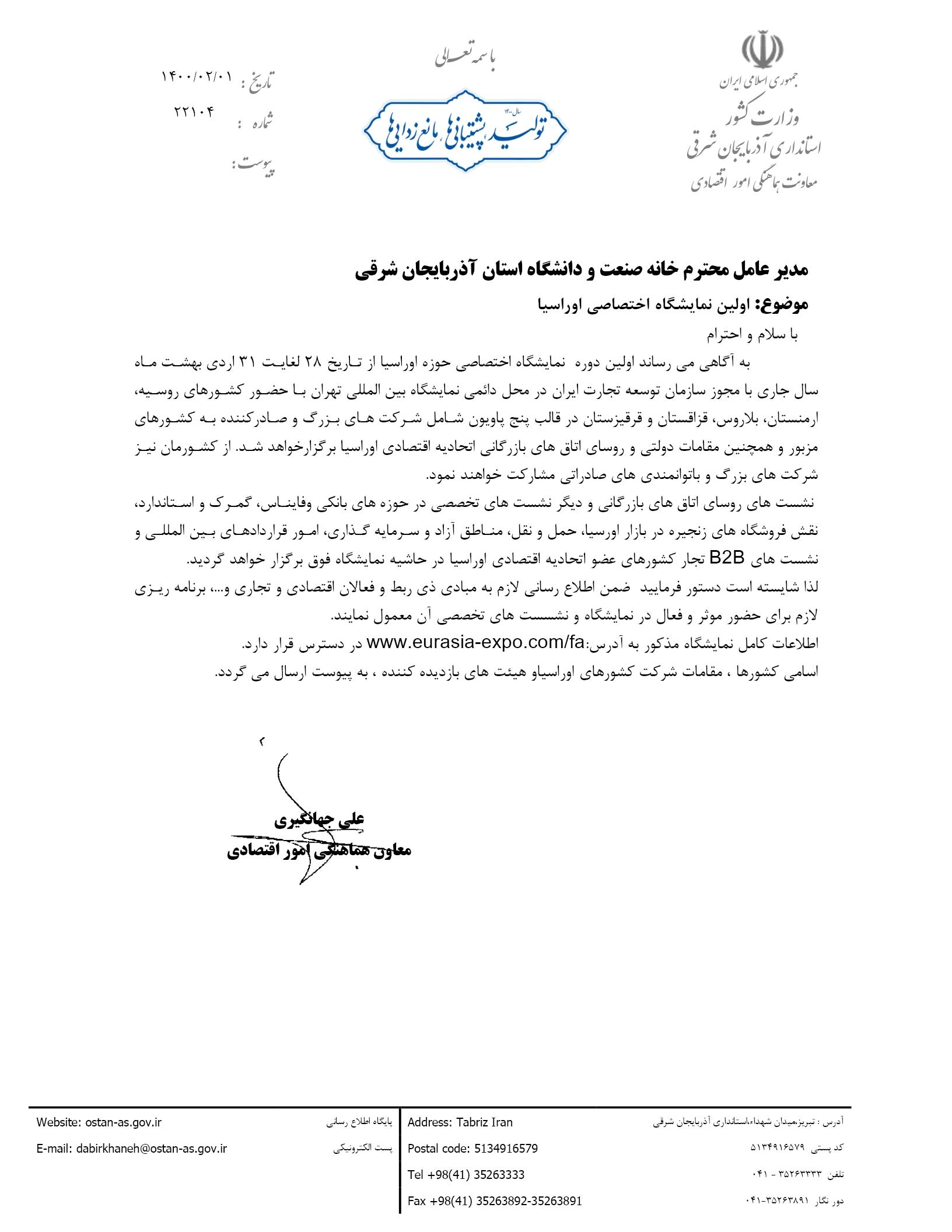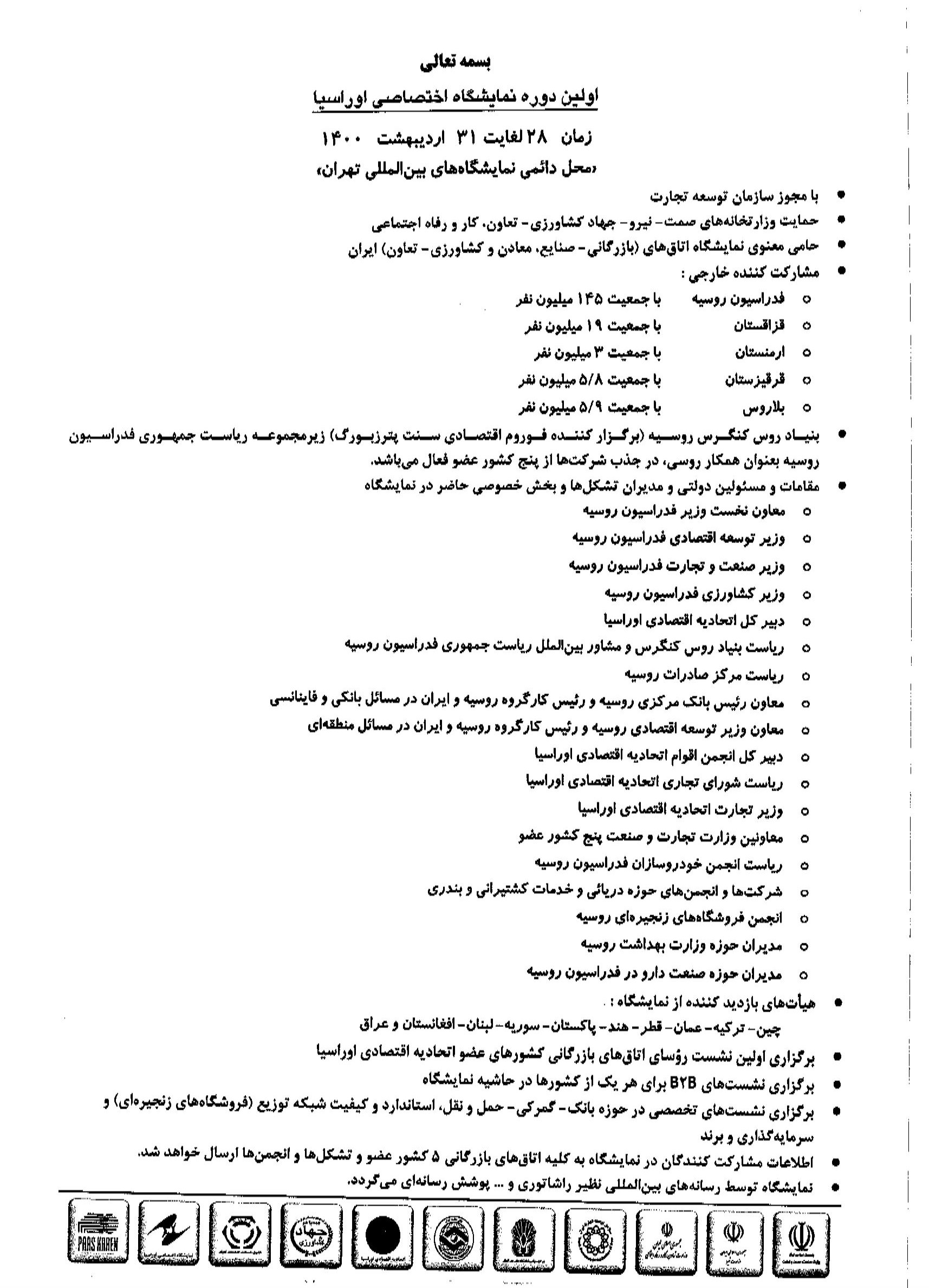 جزئیاتی از اولین دوره نمایشگاه اختصاصی حوزه اوراسیا