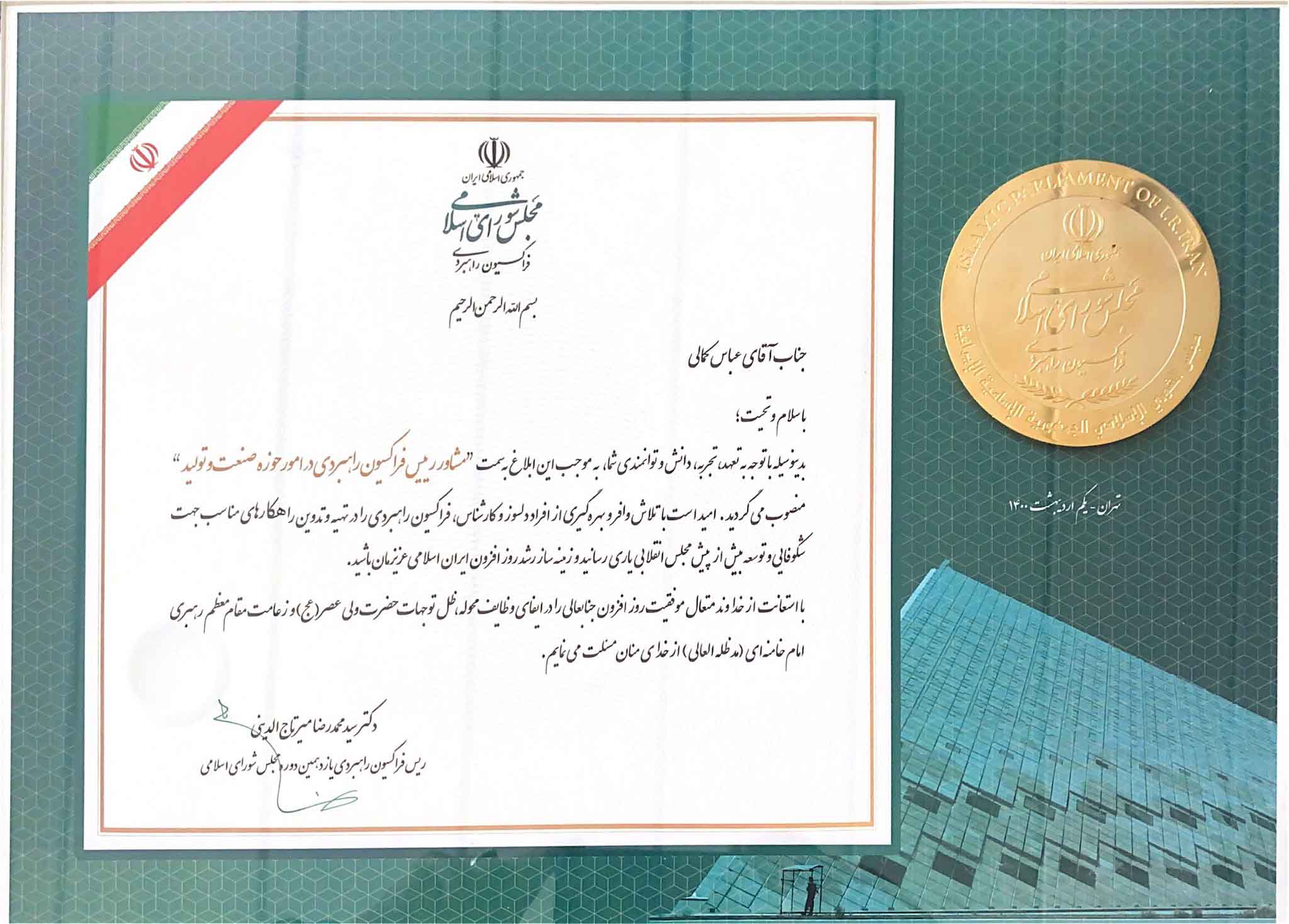 طبق اخبار واصله، جناب آقای عباس کمالی، نائب رییس اتاق بازرگانی تبریز با امضای رییس فراکسیون راهبردی یازدهمین دوره مجلس شورای اسلامی به سمت " مشاور رییس فراکسیون راهبردی در امور حوزه صنعت و تولید" منصوب شده اند.