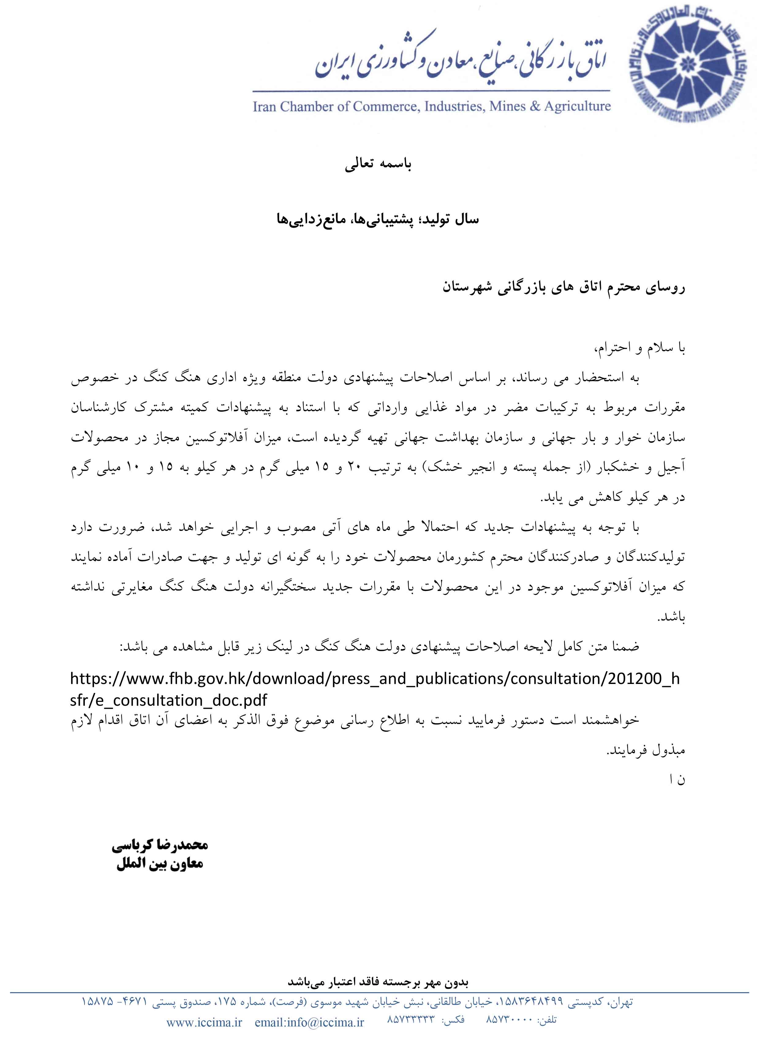 میزان آفلاتوکسین مجاز در آجیل و خشکبار برای هنگ کنگ