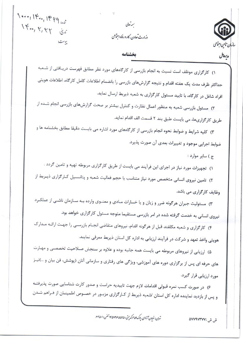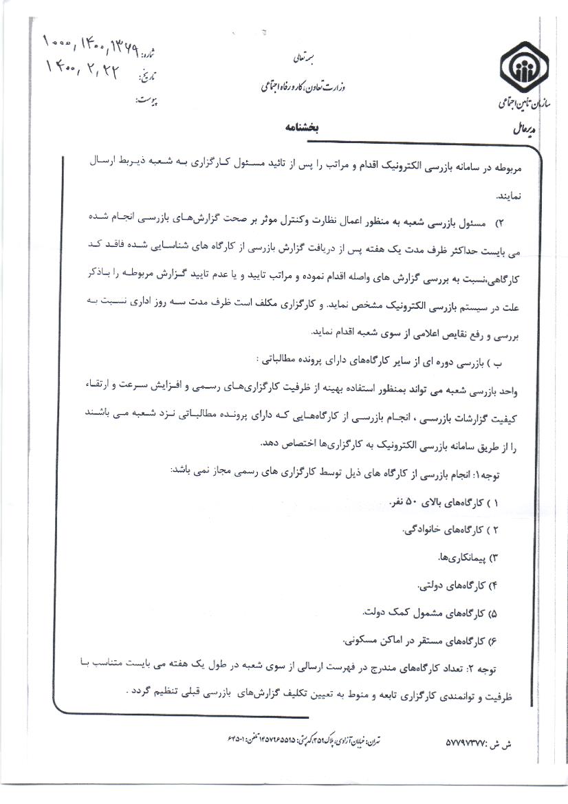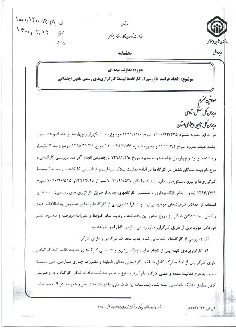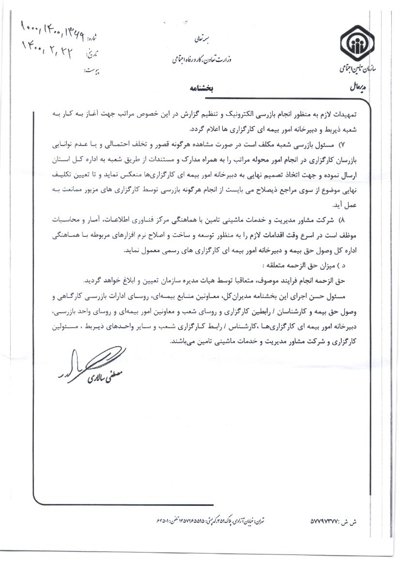 بخشنامه سازمان تامین اجتماعی