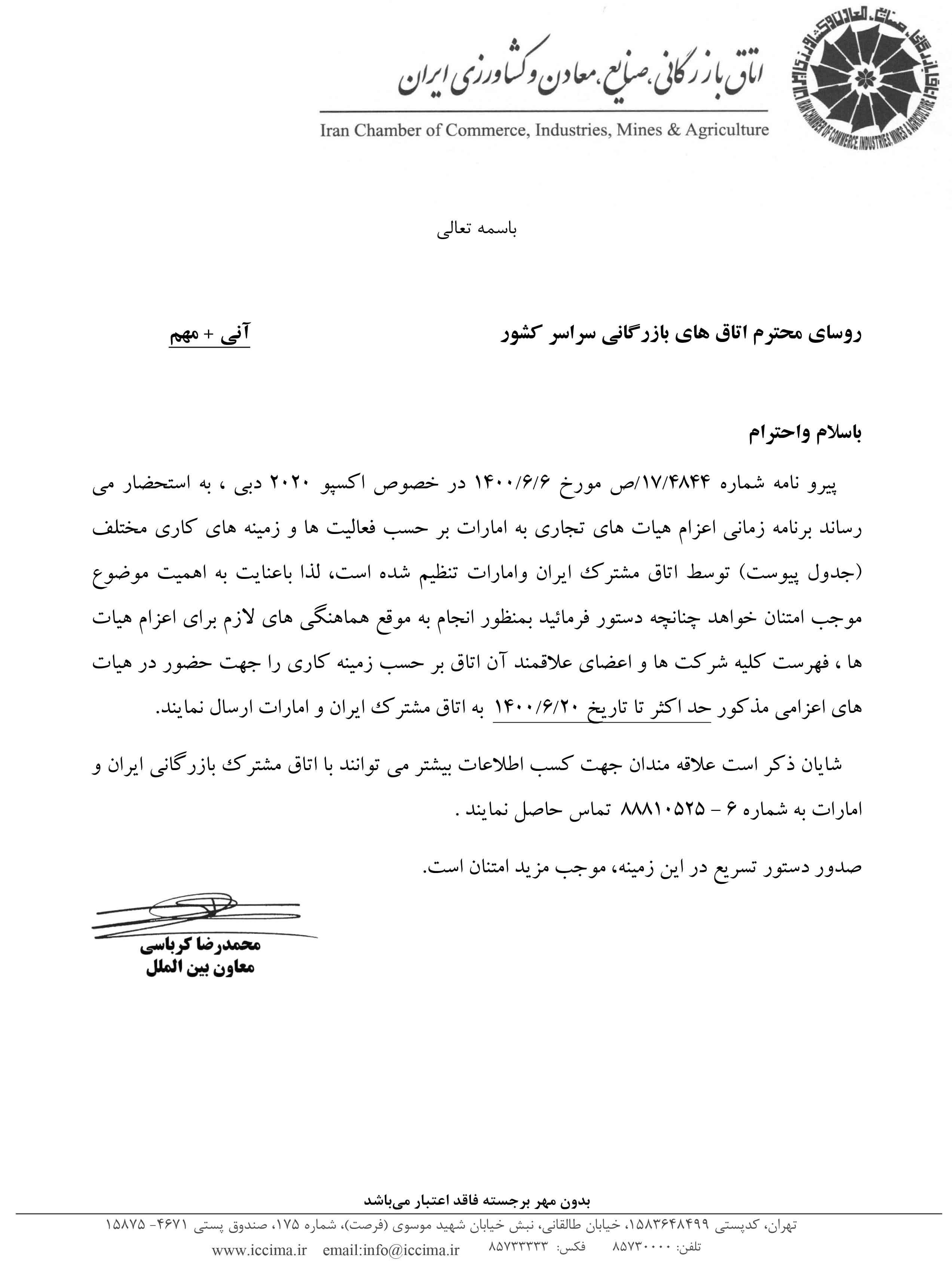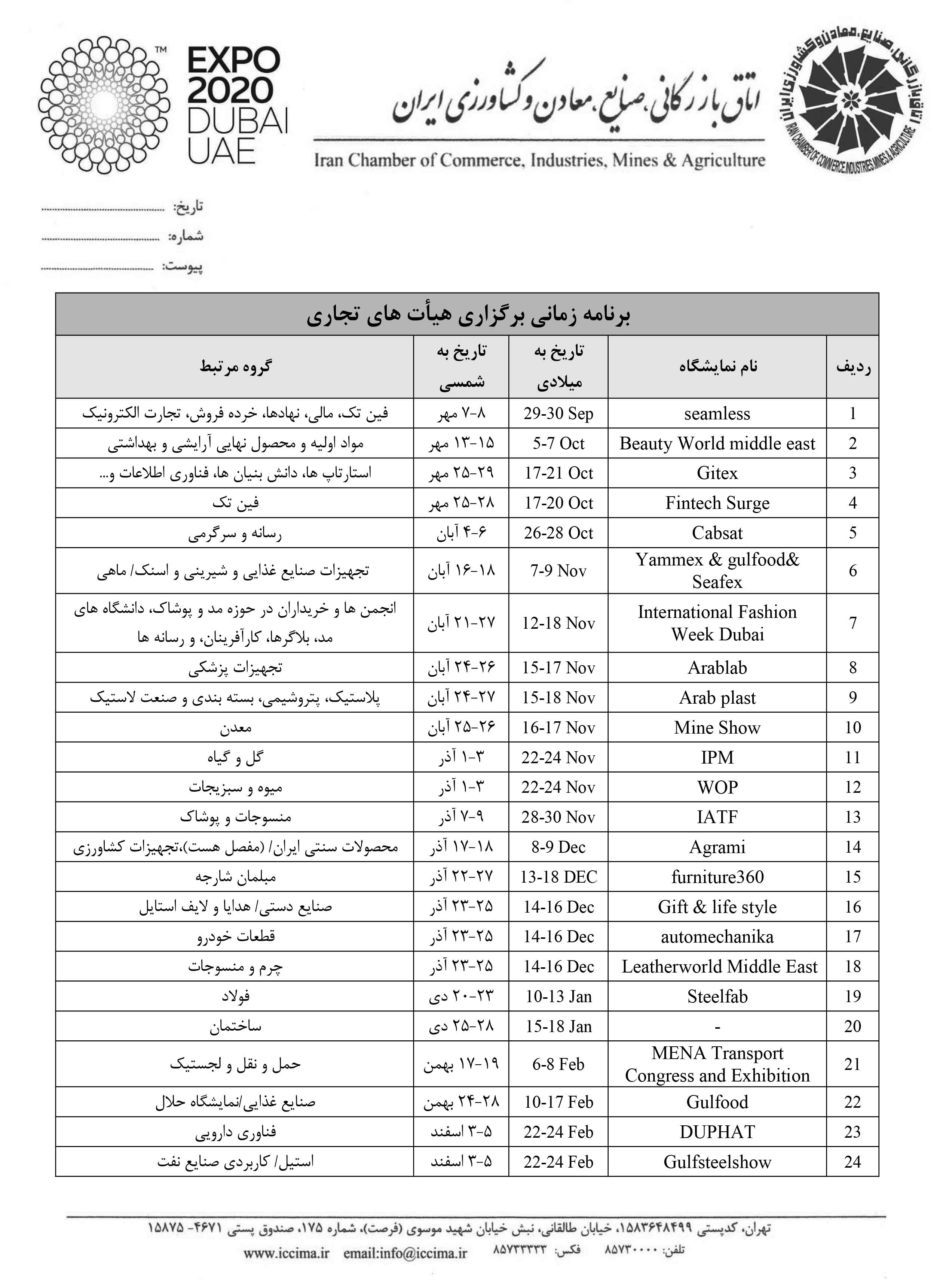 اطلاعیه اعزام هیات های تجاری برای شرکت در اکسپوی 2020 دبی