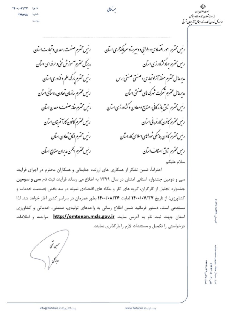 آغاز فرایند ثبت نام سی و سومین جشنواره تجلیل از کارگران، گروه های کار و بنگاه های اقتصادی نمونه
