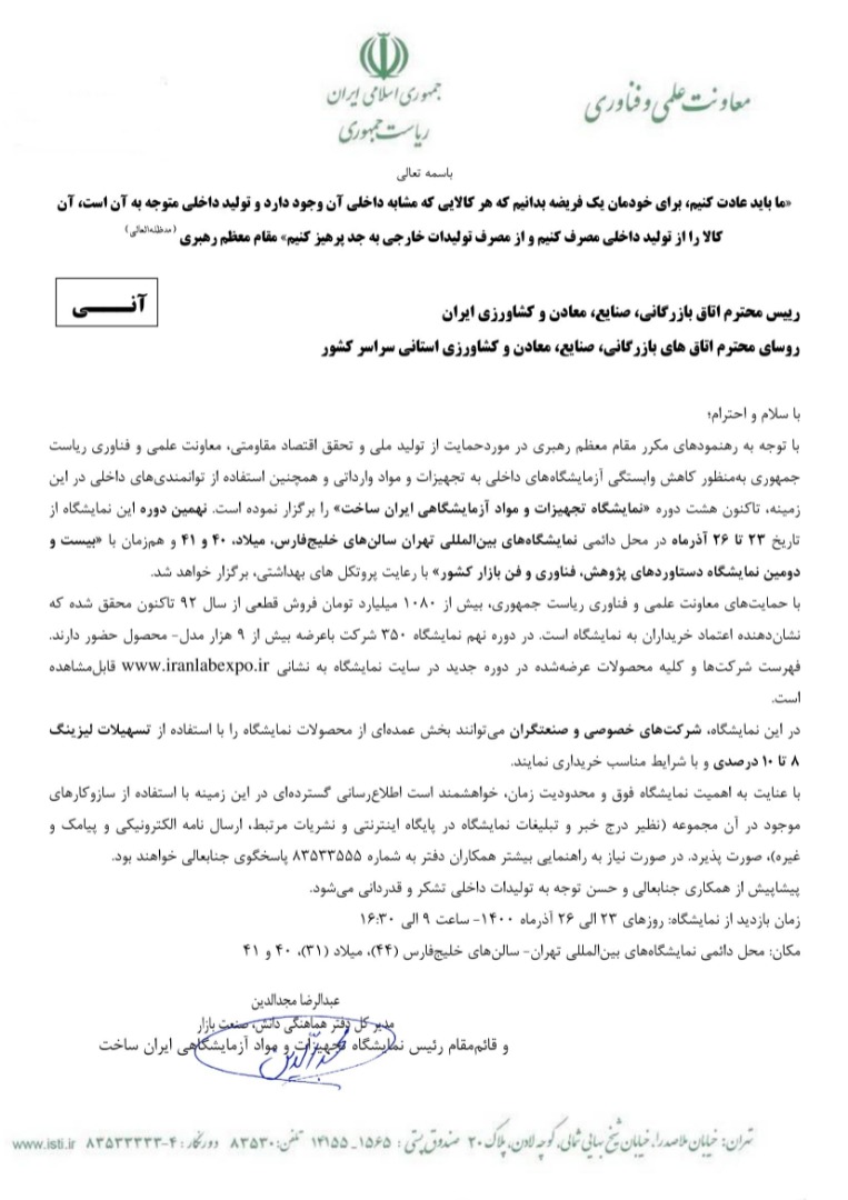 نهمین دوره نمایشگاه تجهیزات و مواد آزمایشگاهی ایران ساخت