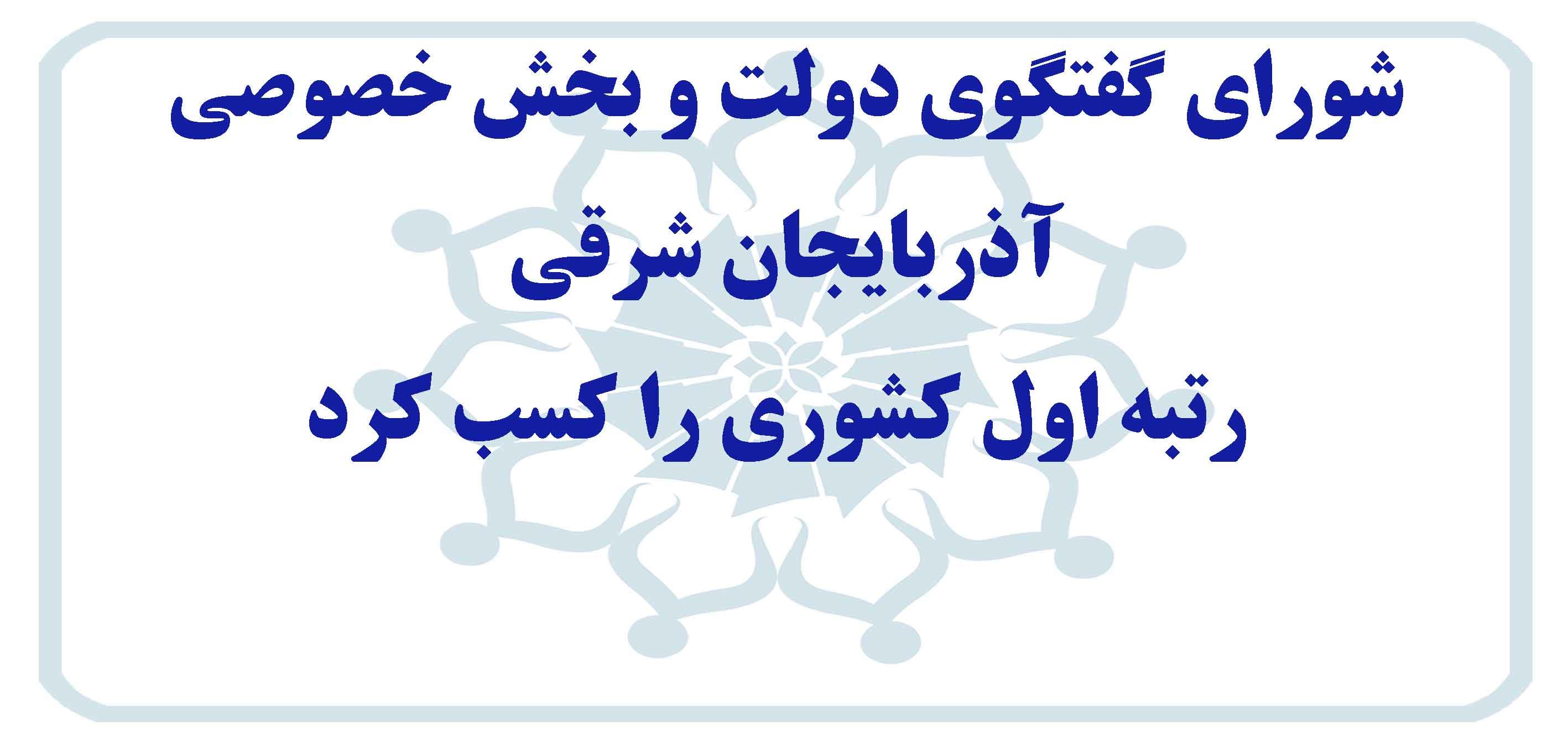 شورای گفتگوی دولت و بخش خصوصی آذربایجان شرقی با کسب امتیاز کامل توانست، رتبه اول کشوری را به دست آورد.
