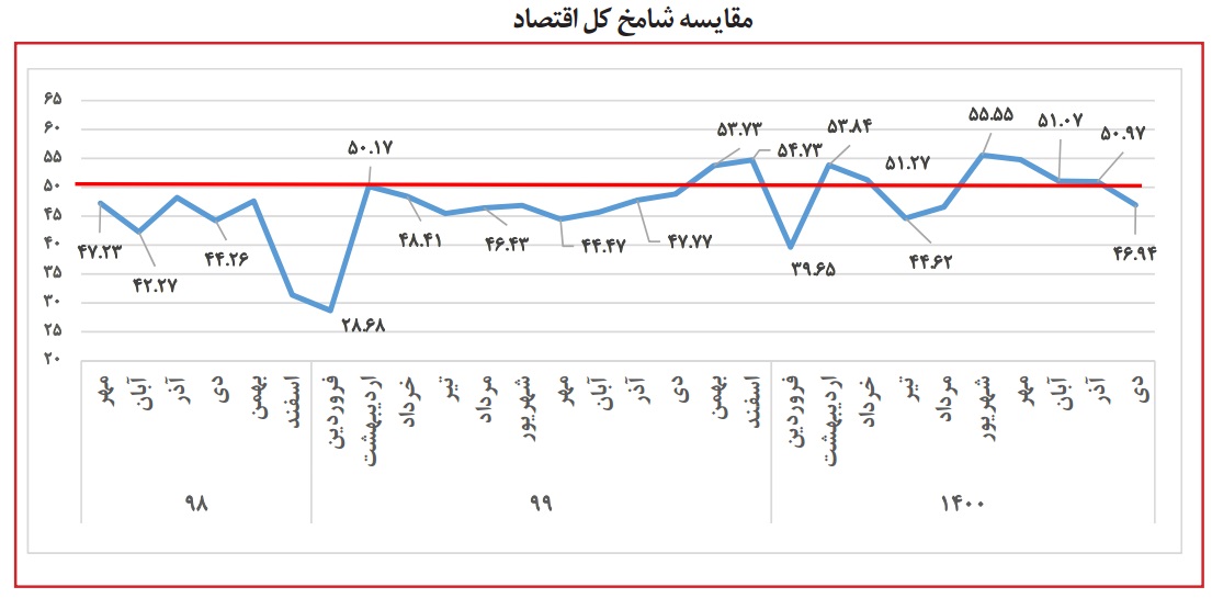 مرکز پژوهش‌های اتاق ایران، شامخ دی‌ماه ۱۴۰۰ را ۴۶,۹۴ واحد اعلام کرد