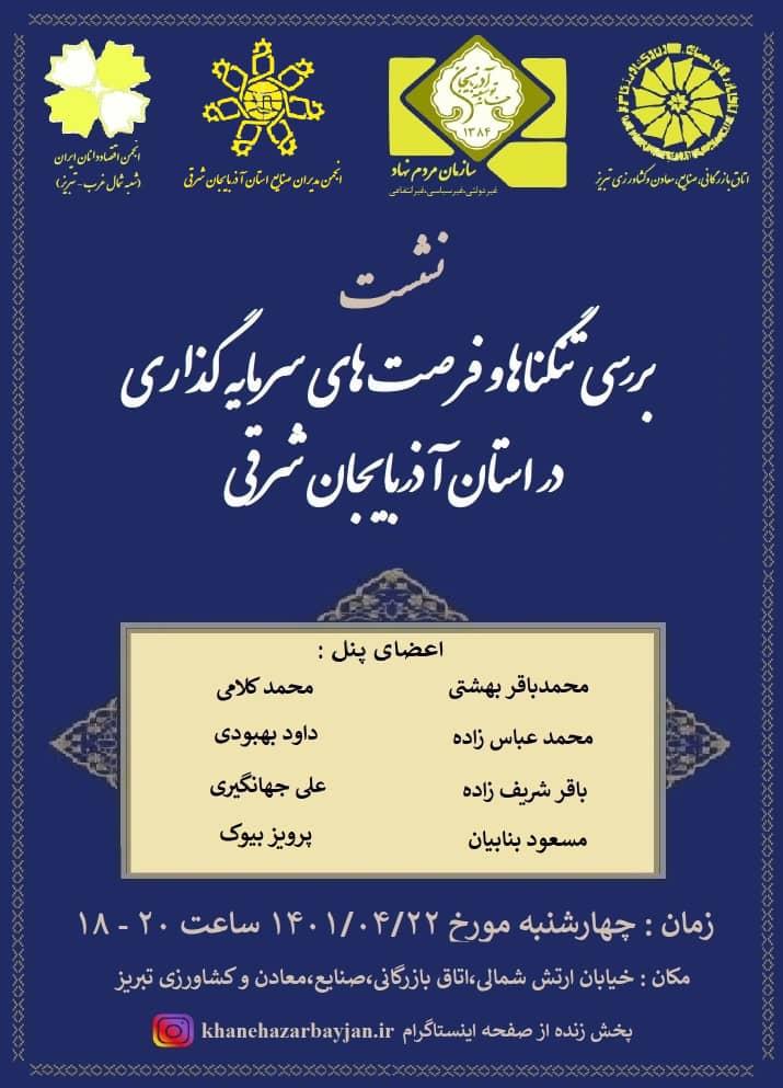 نشست بررسی تنگناها و فرصت های سرمایه گذاری در استان آذربایجان شرقی