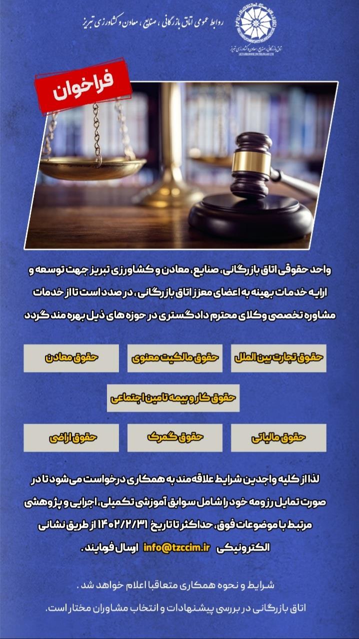 فراخوان مشاوره حقوقی اتاق بازرگانی تبریز