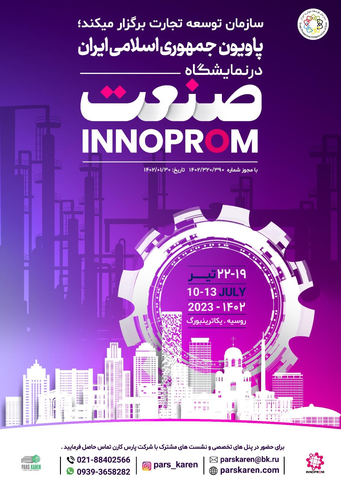 بر اساس اعلام سازمان توسعه تجارت ایران پاویون جمهوری اسلامی ایران در نمایشگاه بین المللی صنعت اینوپروم ۲۰۲۳ روسیه – یکاترینبورک از تاریخ ۱۹ الی ۲۲ تیرماه سالجاری برگزار می شود.
