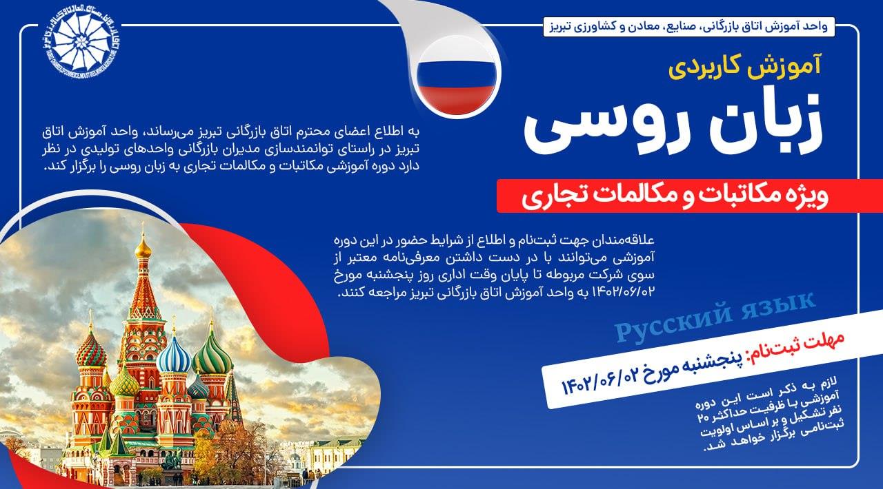 به اطلاع اعضای محترم اتاق بازرگانی تبریز میرساند، واحد آموزش اتاق تبریز در راستای توانمندسازی مدیران بازرگانی واحدهای تولیدی در نظر دارد دوره آموزشی مکاتبات و مکالمات تجاری به زبان روسی را برگزار کند.