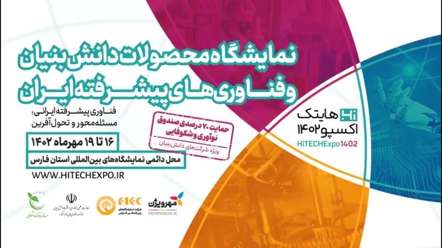 نمايشگاه محصولات دانشبنيان و فناوريهاي پيشرفته ايران(HiTECH EXPO 1402) با حمايت صندوق نوآوري و شكوفايي رياست جمهوري و ساير سازمانهاي متولي زيستبوم فناوري و نوآوري كشور از تاريخ 16 تا 19 مهر ماه در نمايشگاه بينالمللي شهر شيراز استان فارس برگزار ميشود.
