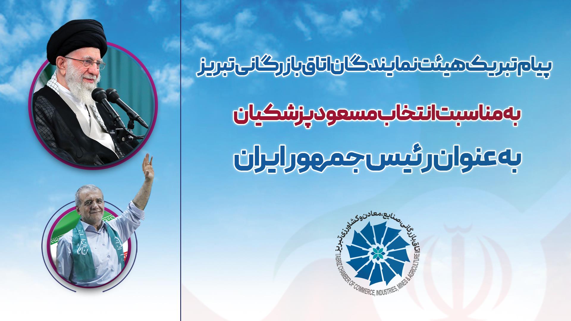 هیئت نمایندگان اتاق تبریز طی پیامی انتخاب مسعود پزشکیان به عنوان رئیس جمهور ایران را تبریک گفتند.