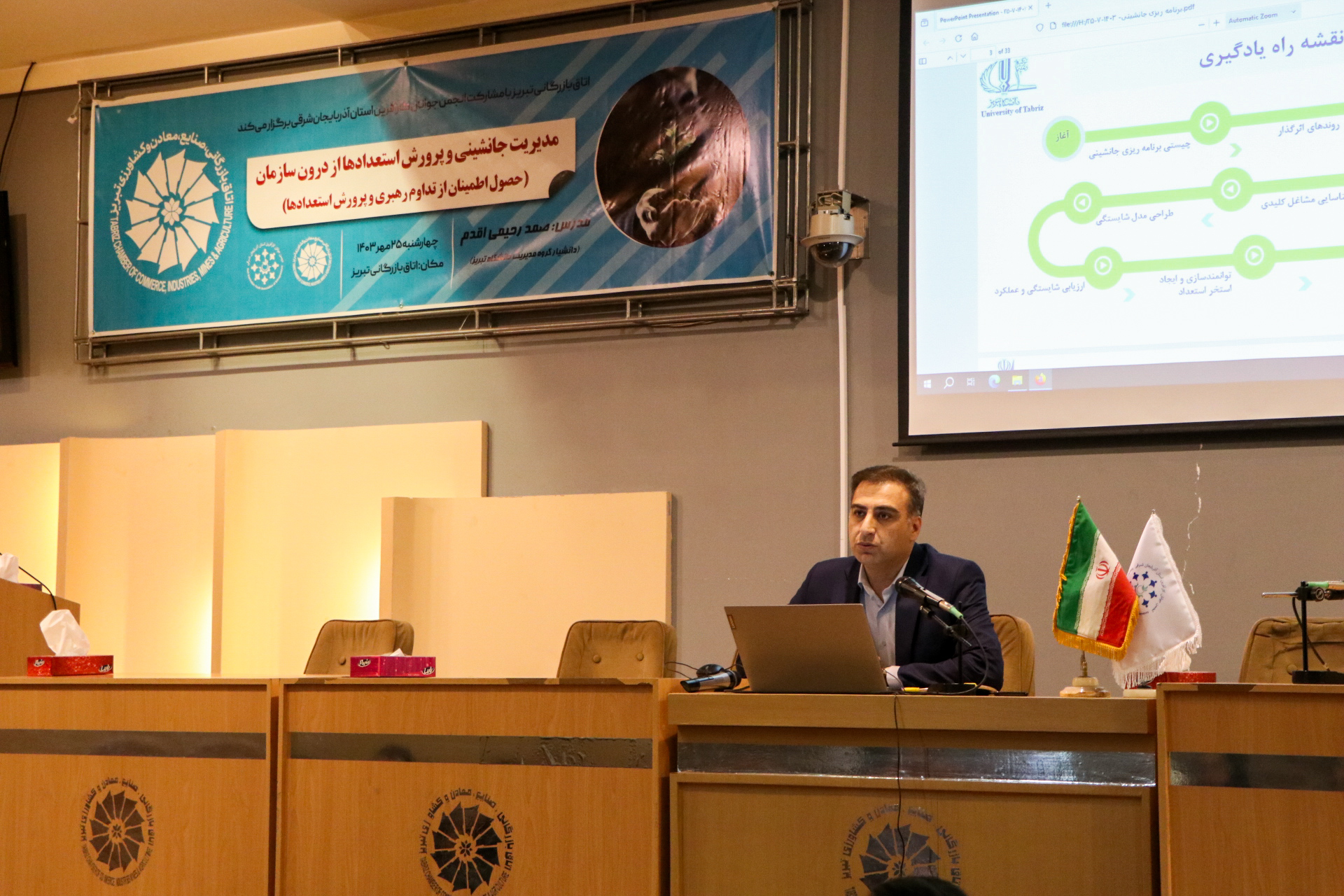 دوره آموزشی مدیریت جانشینی و پرورش استعدادها از درون سازمان (حصول اطمینان از تداوم رهبری و پرورش استعدادها) به همت اتاق تبریز و با مشارکت انجمن جوانان کارآفرین استان آذربایجان‌شرقی برگزار شد.