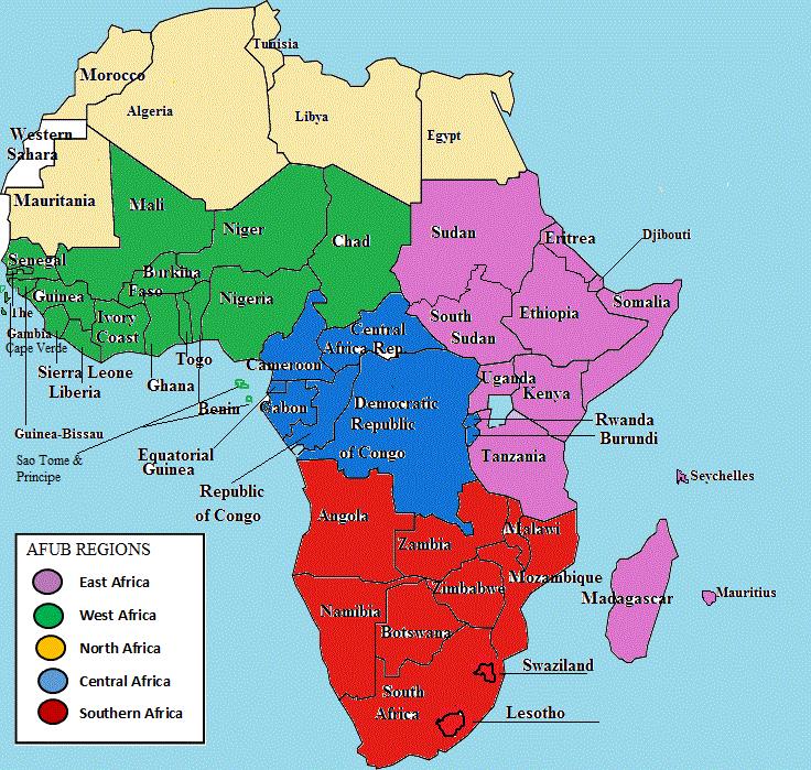 نقشه حاضر تقسیمبندی اتحادیه آفریقا را نشان میدهد.