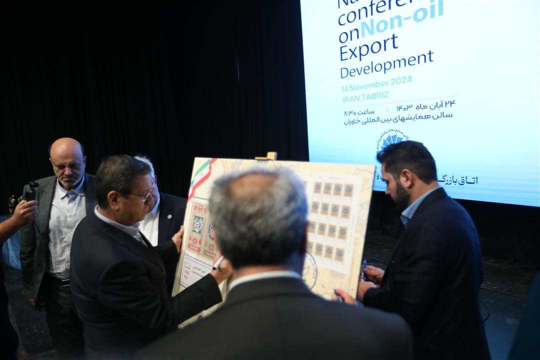 به گزارش روابط عمومی اتاق بازرگانی تبریز، در بیست و هشتمین همایش ملی توسعه صادرات غیر نفتی در تبریز، با حضور عبدالناصر همتی وزیر اقتصاد و امور دارایی، شهرام دبیری معاون پارلمانی رئیس جمهور، صمد حسن زاده رئیس اتاق بازرگانی ایران، بهرام سرمست استاندار آذربایجان شرقی، یونس ژائله رئیس اتاق بازرگانی تبریز و دباغ صادقی پور مدیرکل پست استان آذربایجان شرقی دو تمبر «دیوانخانه و مجلس تجارتی تبریز» و اطاق تجارت و صنایع تبریز» ابطال شد.