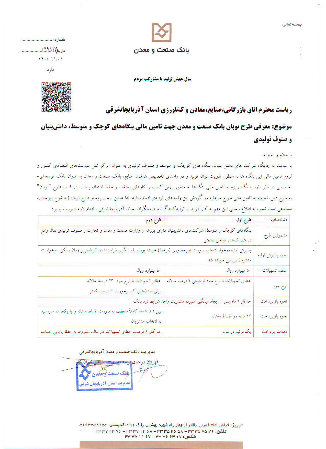 با عنایت به جایگاه شرکتهای دانش بنیان بنگاههای کوچک و متوسط و صنف تولیدی به عنوان مرکز ثقل سیاستهای اقتصادی کشور و لزوم تامین مالی این بنگاهها به منظور تقویت توان تولید، در راستای تخصیص هدفمند منابع، بانک صنعت و معدن به عنوان بانک توسعه ای تخصصی در نظر دارد در قالب طرح «نوبان» نسبت به تامین مالی سریع سرمایه در گردش واحدهای تولیدی اقدام کند.