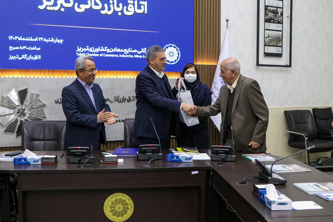 همچنین در پایان جلسه از آقای سلیمی, پدر علم صنعت متالورژی استان آذربایجان شرقی و  استاد علم و طراحی خوشه‌های صنعتی، از طرف اتاق بازرگانی تبریز قدردانی به عمل آمد.