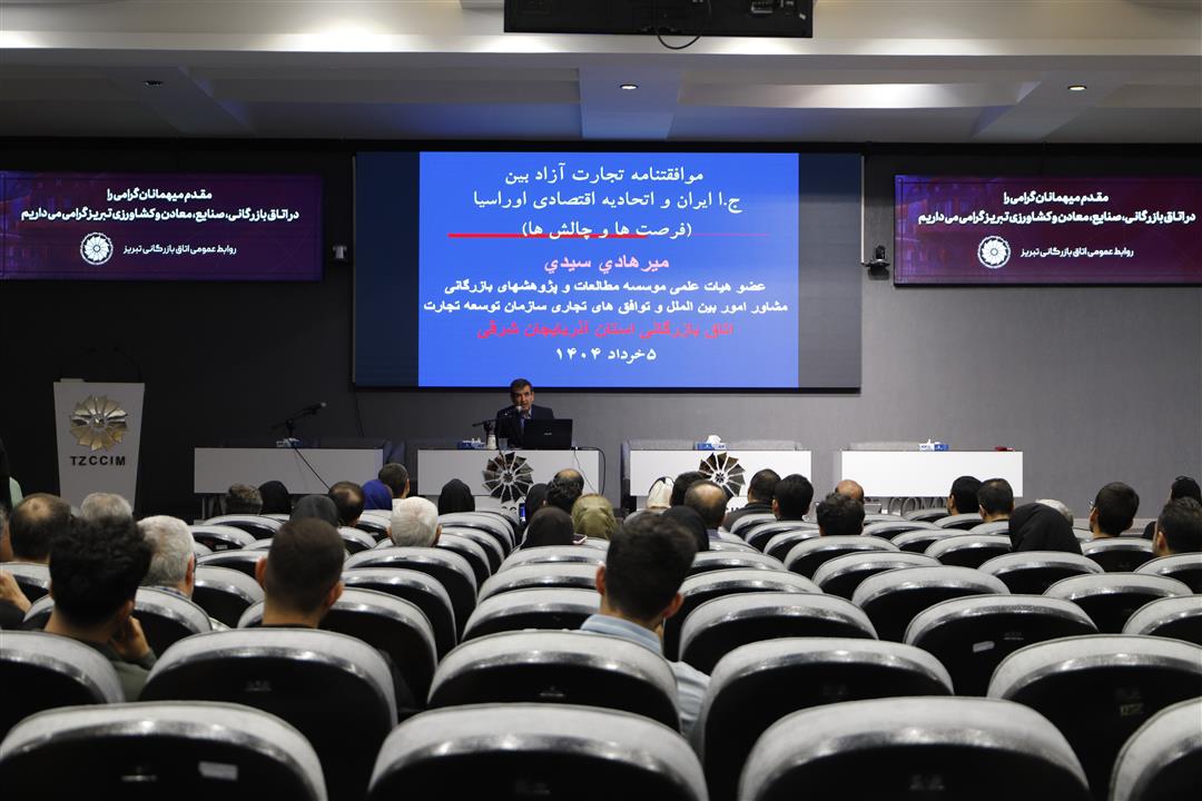 کارگاه آموزشی «تبیین فرصتها و چالشهای موافقتنامه تجارت آزاد ایران با اتحادیه اقتصادی اوراسیا» با تدریس میرهادی سیدی، مشاور امور بین الملل سازمان و مذاکره کننده وزارت صمت در امور اوراسیا، به همت دبیرخاته اتاقهای بازرگانی شمالغرب کشور در اتاق بازرگانی تبریز برگزار شد.