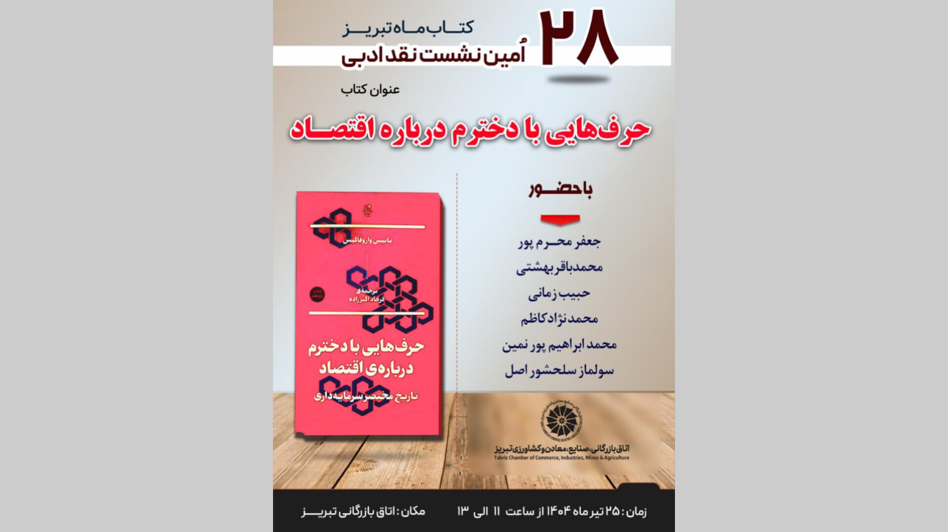 محل برگزاری نشست اتاق بازرگانی تبریز خواهد بود و علاقهمندان به مباحث اقتصادی و نقد ادبی میتوانند در این جلسه شرکت کنند.
