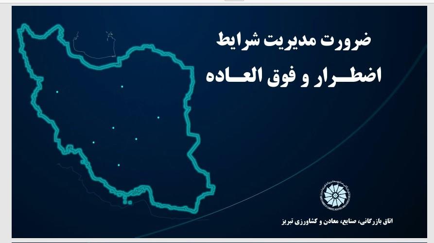 به منظور هماهنگی مؤثر و مدیریت هدفمند وضعیت واحدهای صنعتی، بنا به درخواست رئیس کمیسیون صنایع و انرژی اتاق بازرگانی تبریز، کمیته مدیریت بحران صنایع با محوریت اولویت‌بندی مسائل و چالش‌های اساسی صنایع، هم‌افزایی مدیران صنعتی برای استمرار تولید در صنایع اولویت‌دار، مدیریت منابع انسانی و تأمین معیشت نیروی کار در شرایط بحرانی و استفاده از ظرفیت‌های درون‌صنفی برای عبور از بحران و حفظ تولید مطرح شد.