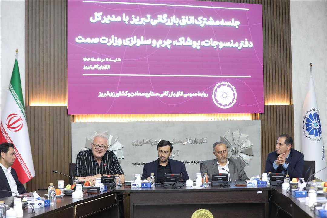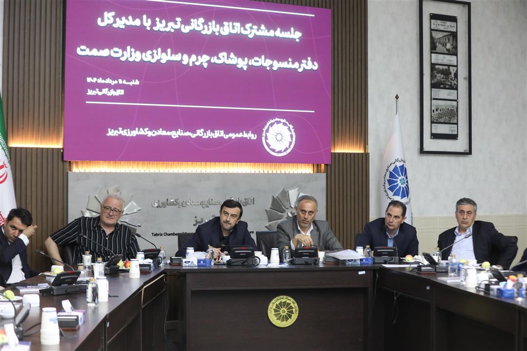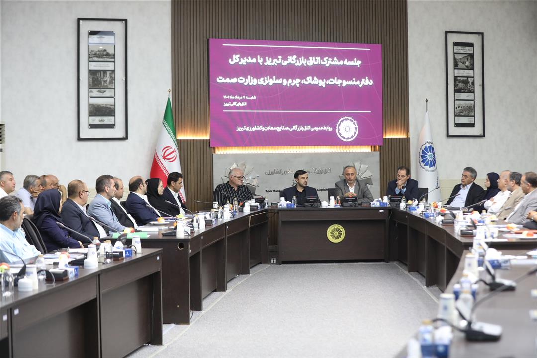 جلسه مشترک اتاق بازرگانی تبریز با مدیر کل دفتر منسوجات، پوشاک، چرم و سلولزی وزارت صمت با حضور مدیران صنایع نساجی، چرم، کفش و سلولزی، مدیر کل صمت استان آذربایجانشرقی و جمعی از هیئت نمایندگان اتاق بازرگانی تبریز برگزار شد.