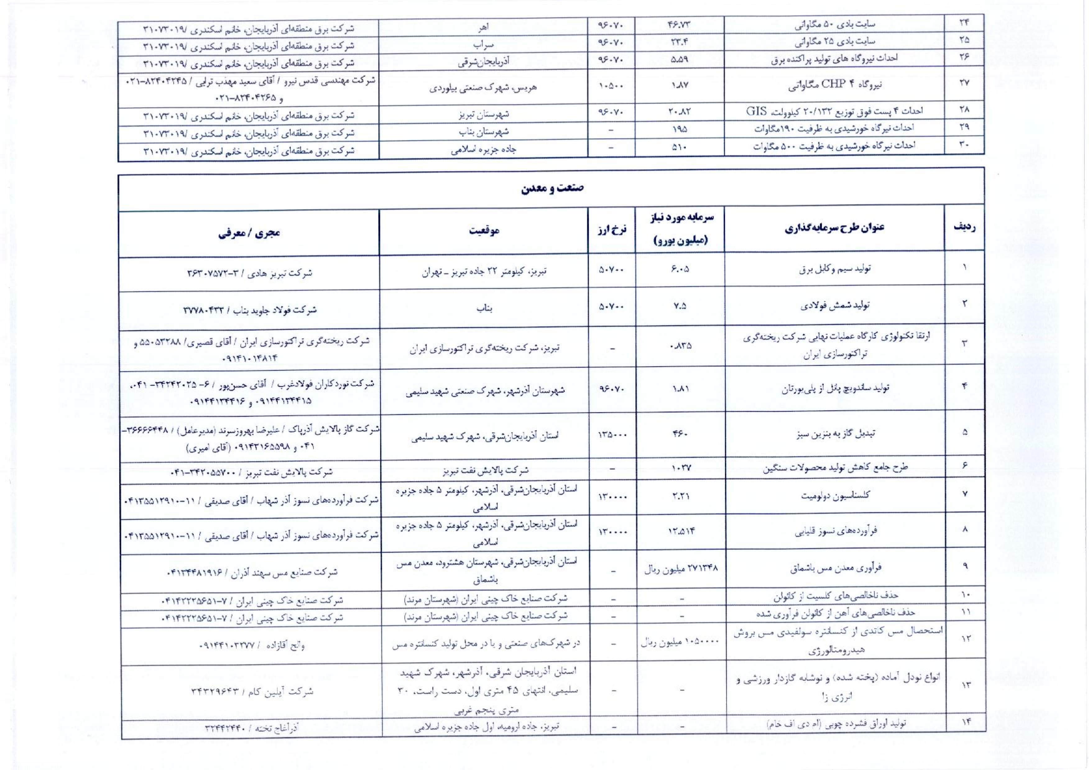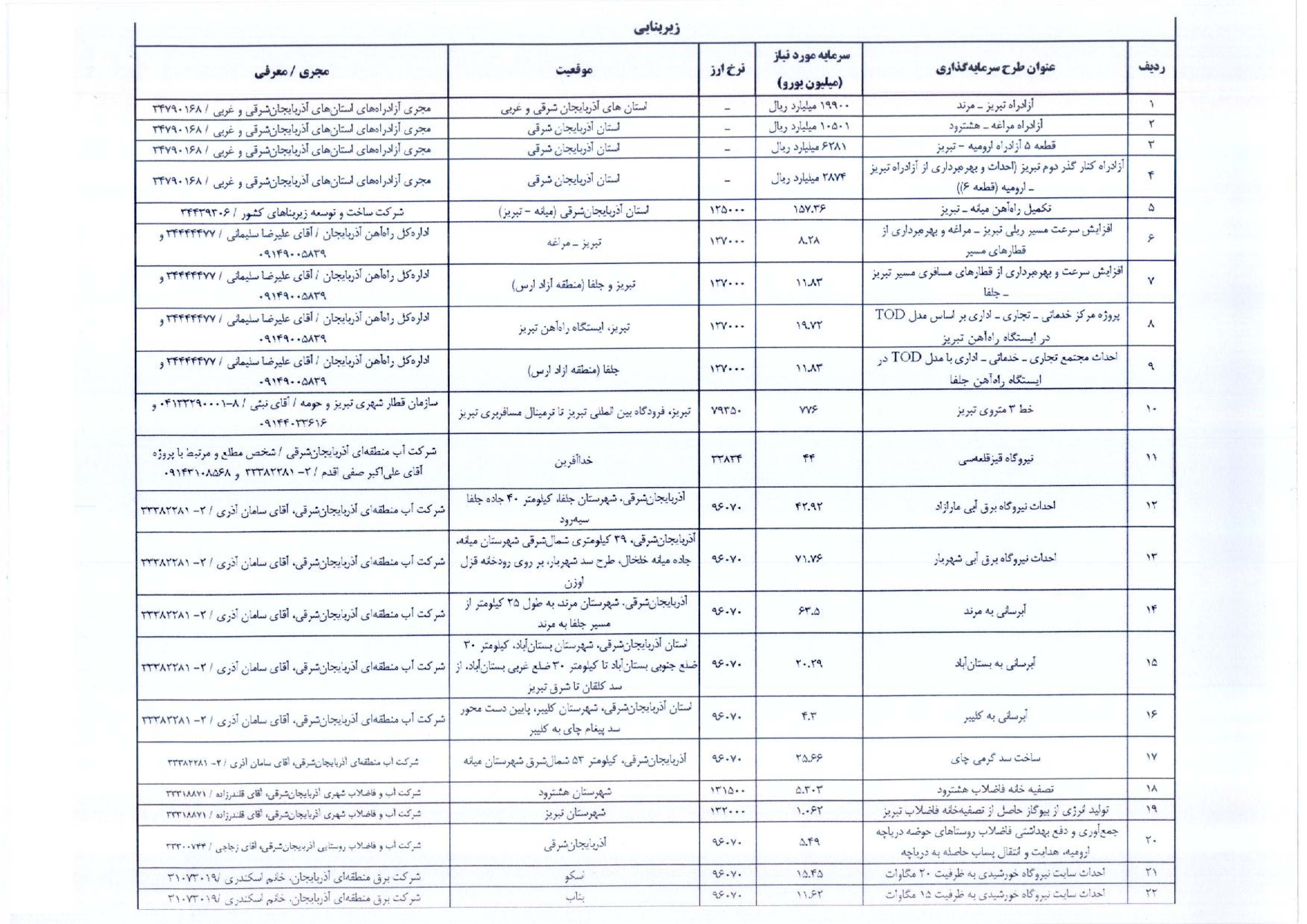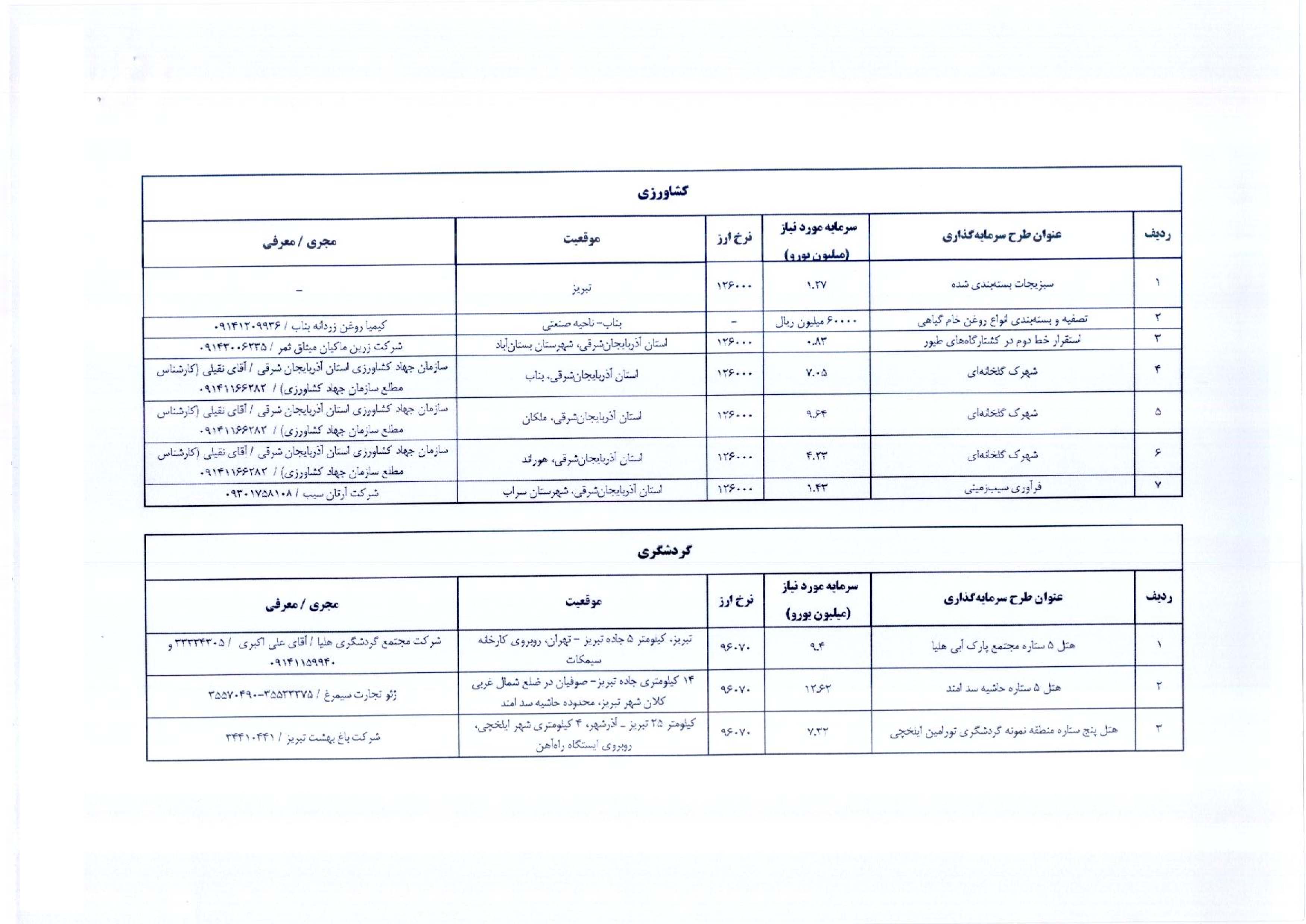 لیست نهایی طرح های سرمایه گذاری ارائه شده از سوی دستگاه های استان