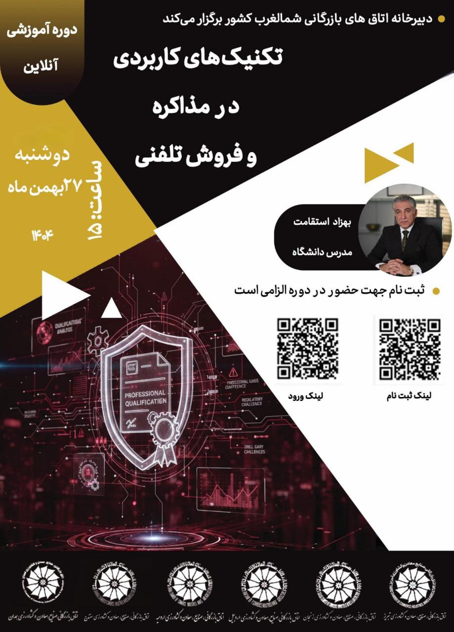 وبینار آموزشی تکنیک‌های کاربردی در مذاکره و فروش تلفنی به همت دبیرخانه اتاق‌های بازرگانی شمالغرب کشور برگزار می‌شود.