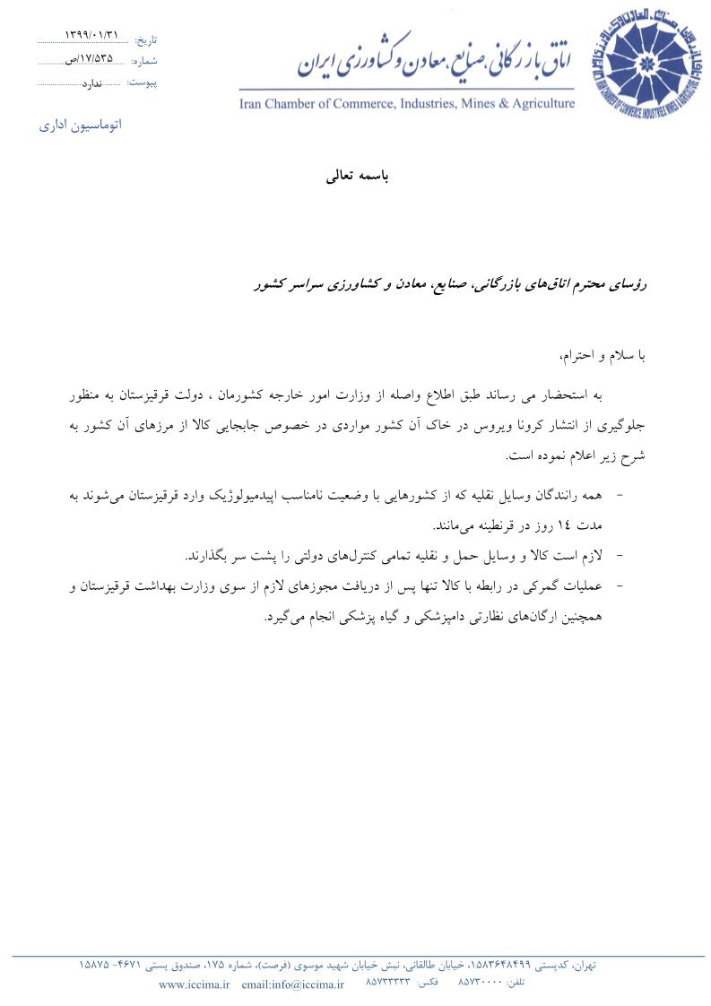 تصمیمات دولت قرقیزستان در خصوص ورودات کالا به این کشور